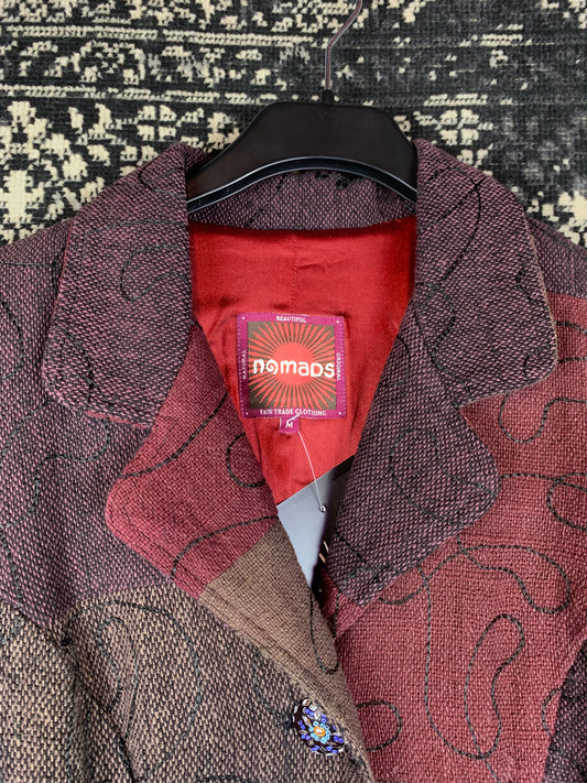 Nomads Patchwork Boho Coat with Colorful Embroidered Buttons