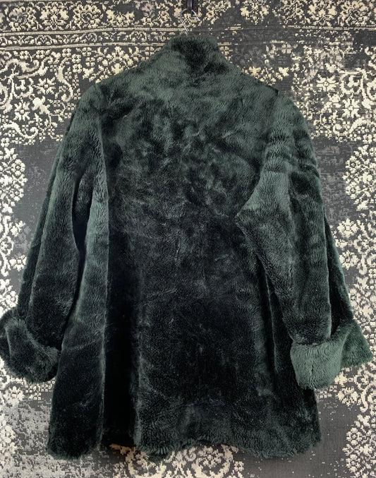 Elegant Vintage Dark Green Faux Fur Coat