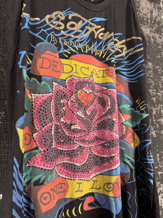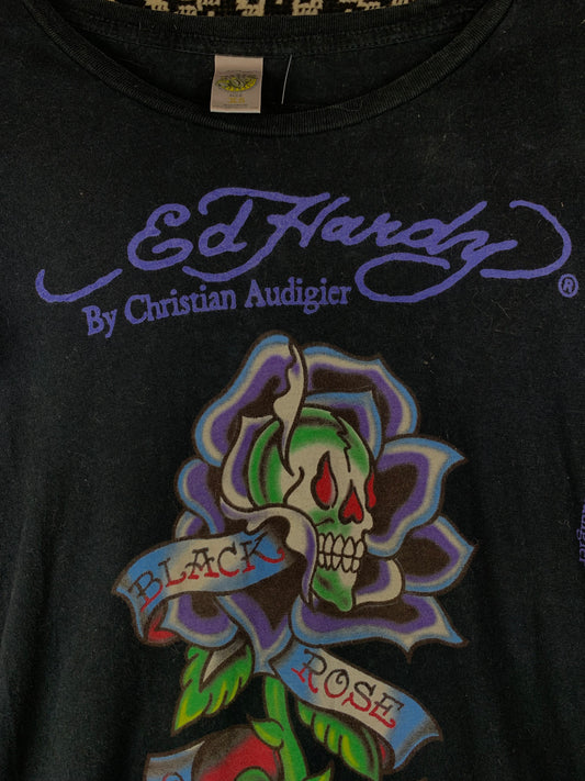 Womens Y2K Ed Hardy By Christian Audigier Black Tattoo Style Graphic T-Shirt
