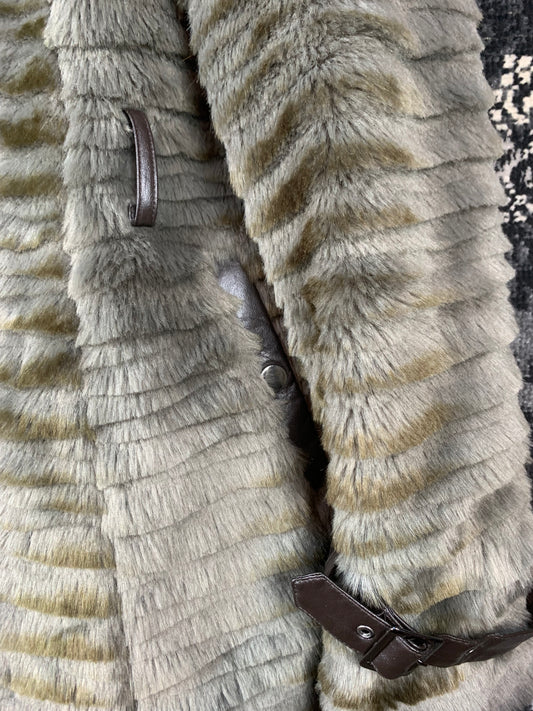Womens Y2K Beige Suede Coat With Long Faux Fur Trim