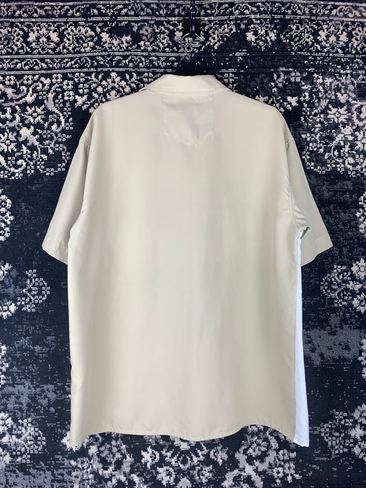 Y2K Men's White and Beige Embroidered Tribal Button-Up Shirt