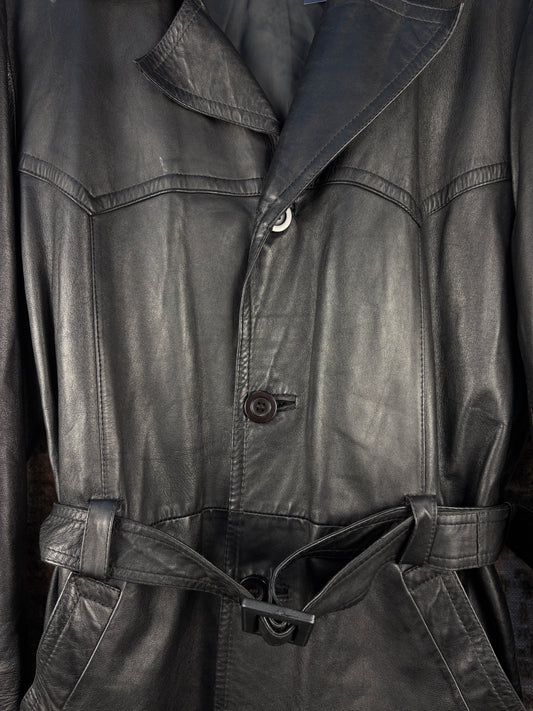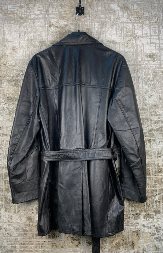 Womens Vintage Black Leather Coat Belted Jacket