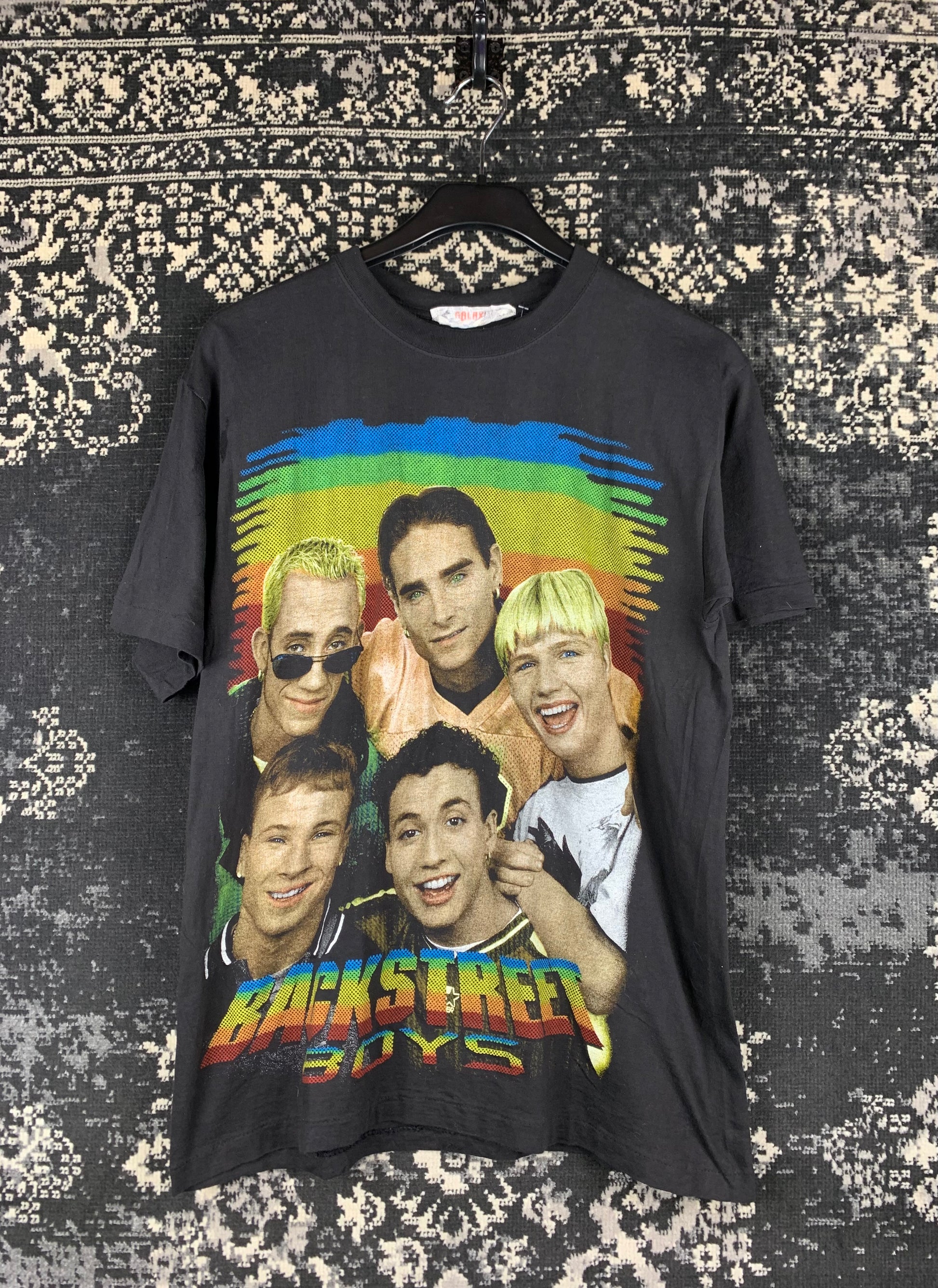 Men's Vintage Backstreet Boys Graphic T-Shirt – Rainbow 90s Boy Band Tee by Galaxy 2000 – Rare Pop Music Collectible – Size M