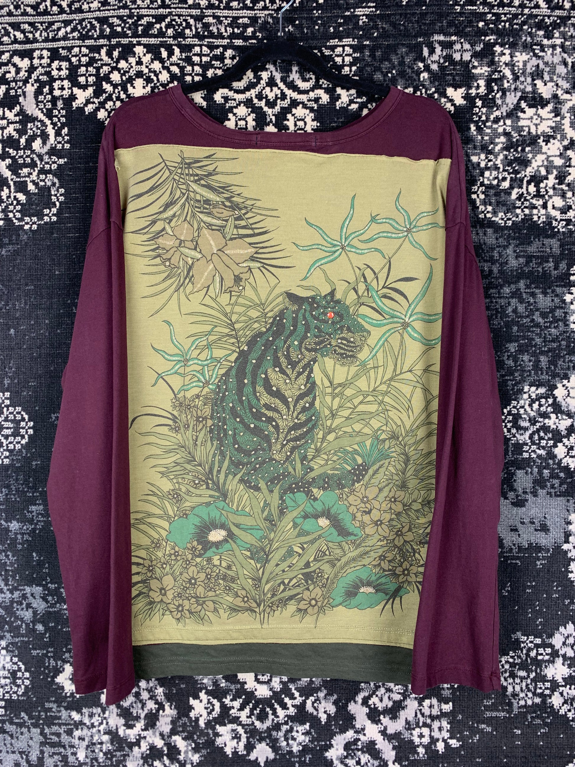 BigBadKids Y2K Cherry Brown Long Sleeve Shirt with Graphic Dragon and Botanical Back Print – Streetwear Loose Fit