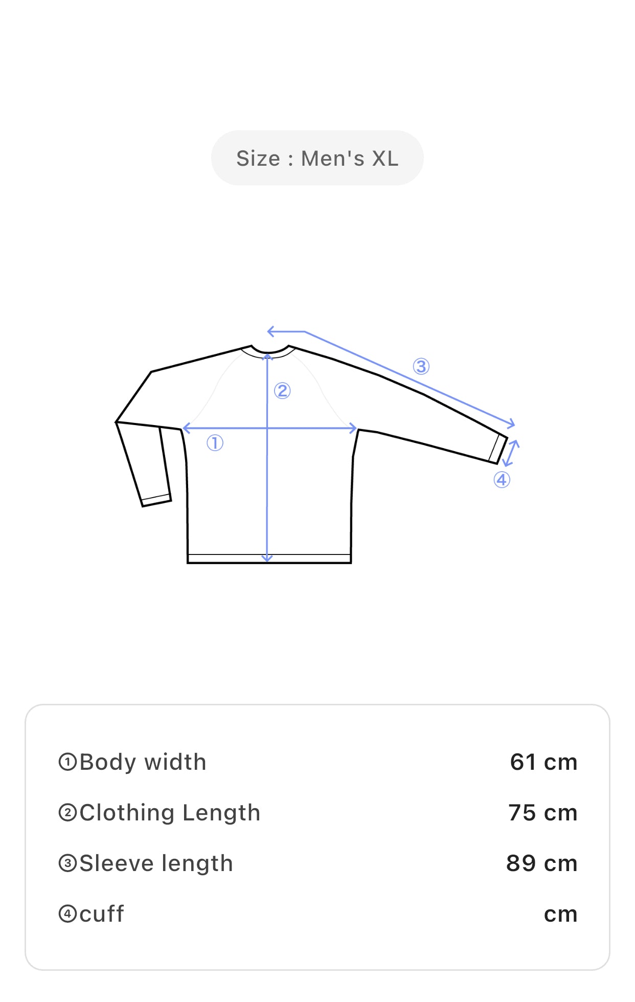 Size: Men's XL — Body Width: 61 cm, Clothing Length: 75 cm, Sleeve Length: 89 cm