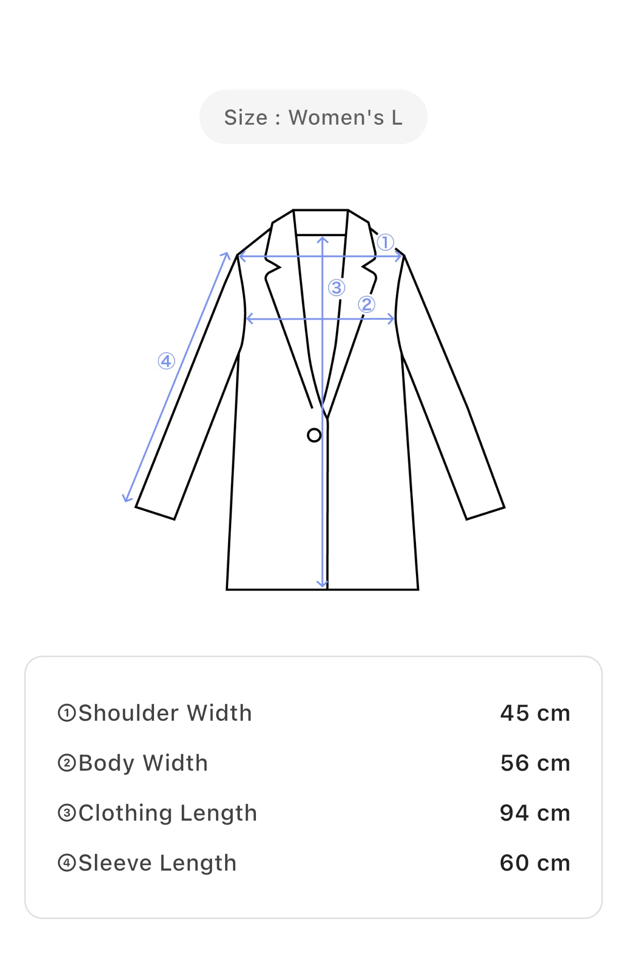 Size: Women's L — Shoulder Width: 45 cm, Body Width: 56 cm, Clothing Length: 94 cm, Sleeve Length: 60 cm