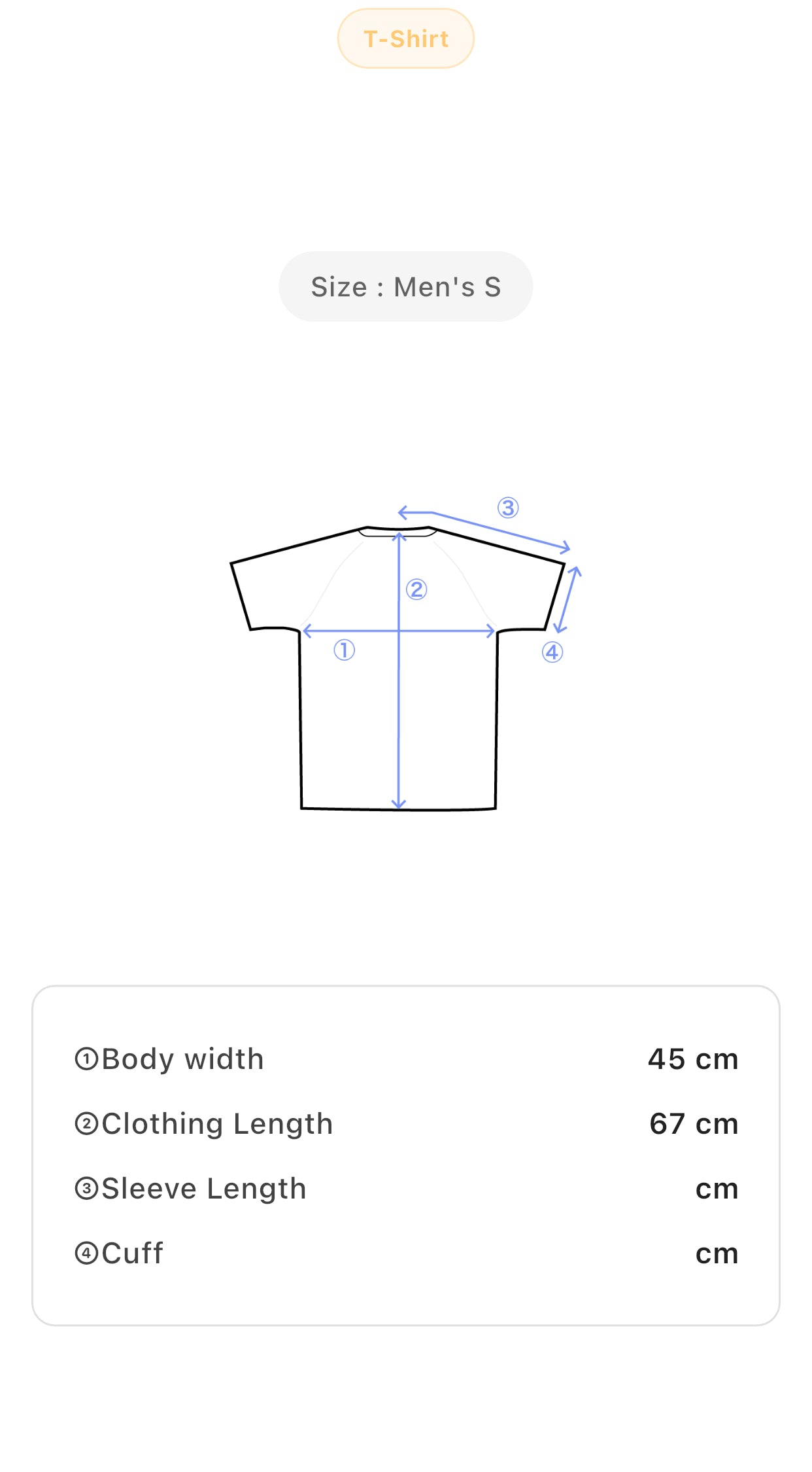 Size: Men's S — Body Width: 45 cm, Clothing Length: 67 cm
