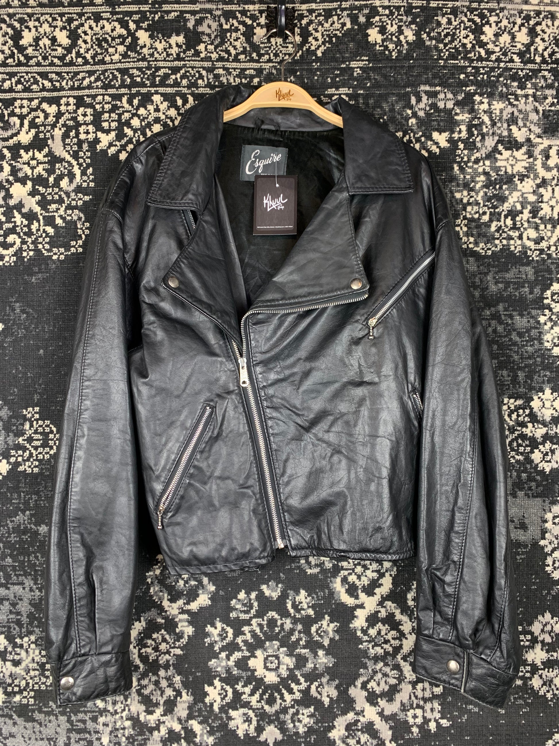 Men's Vintage Esquire Black Leather Motorcycle Jacket