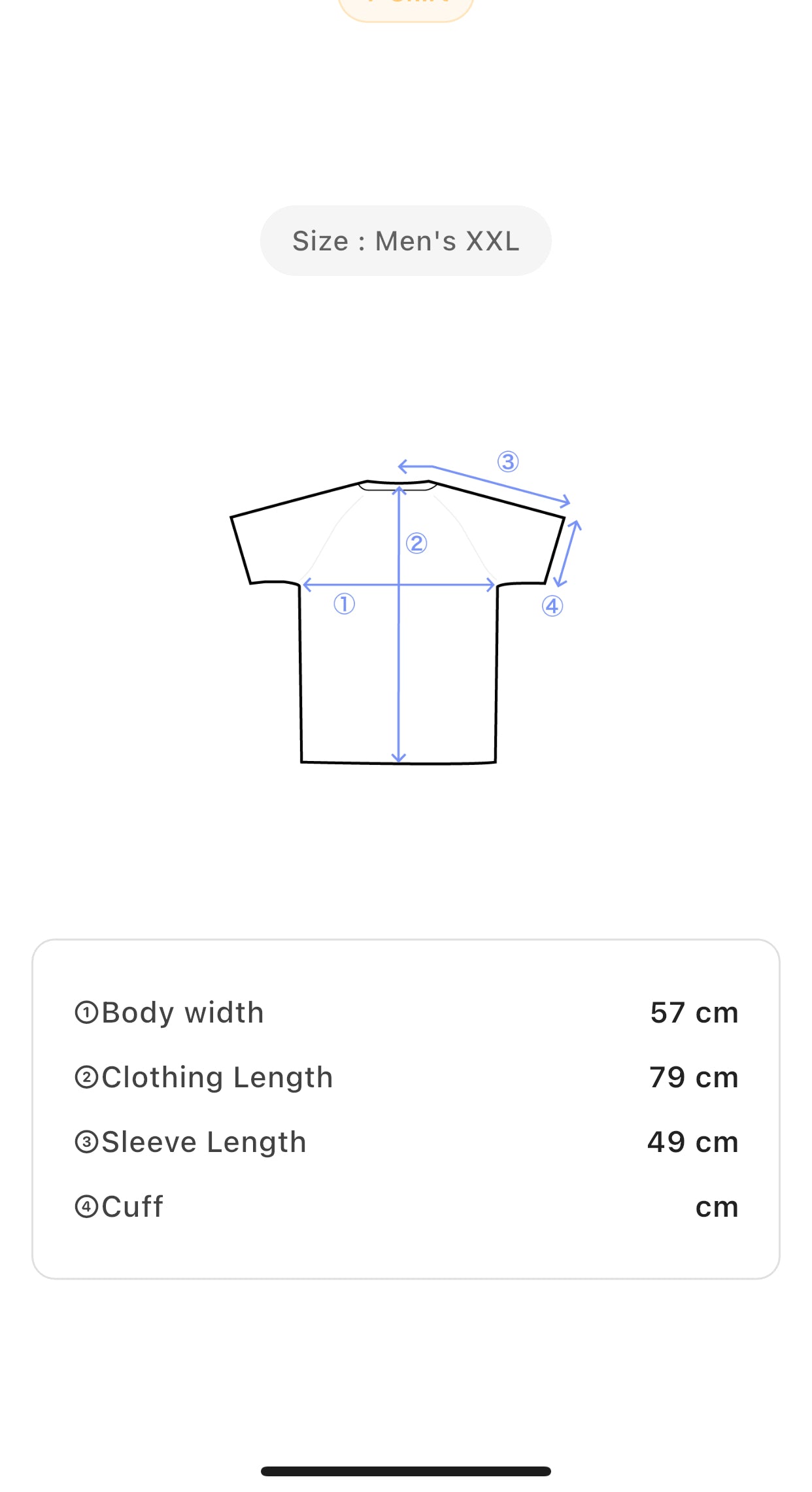 Size: Men's XXL — Body Width: 57 cm, Length: 79 cm, Sleeve Length: 49 cm