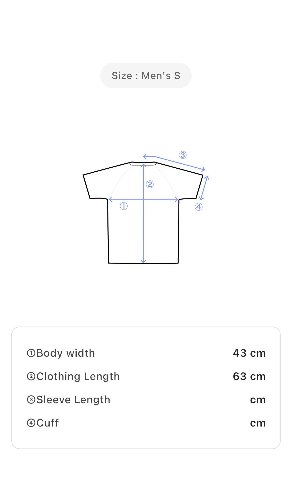 • Size: Men’s S (Body width 43 cm, Clothing Length 63 cm)
