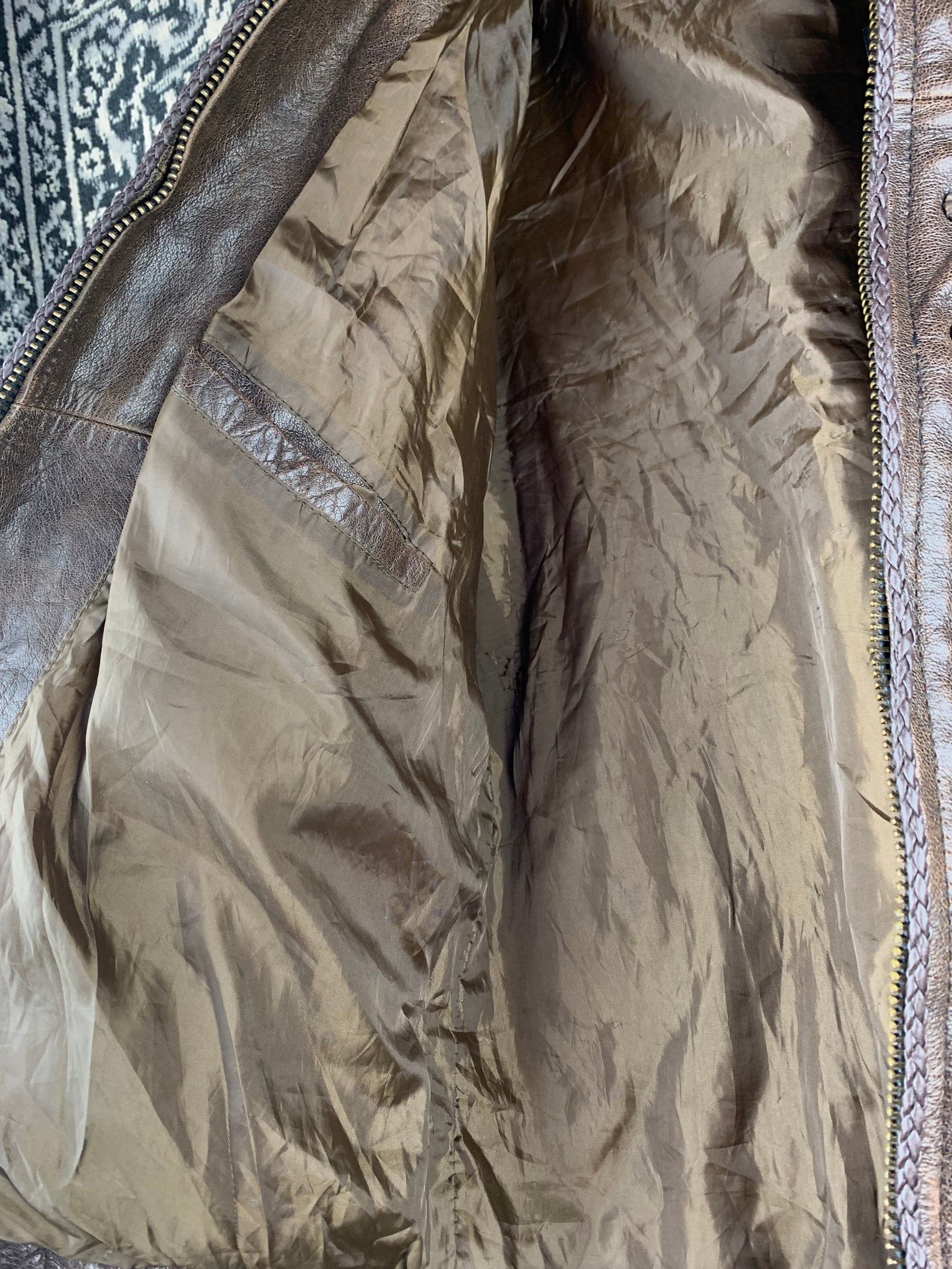 Men's Vintage Leather Gallery Brown Cowboy Jacket with Fringe and Bone Detailing – Western Style Rodeo Outerwear – XL Fit