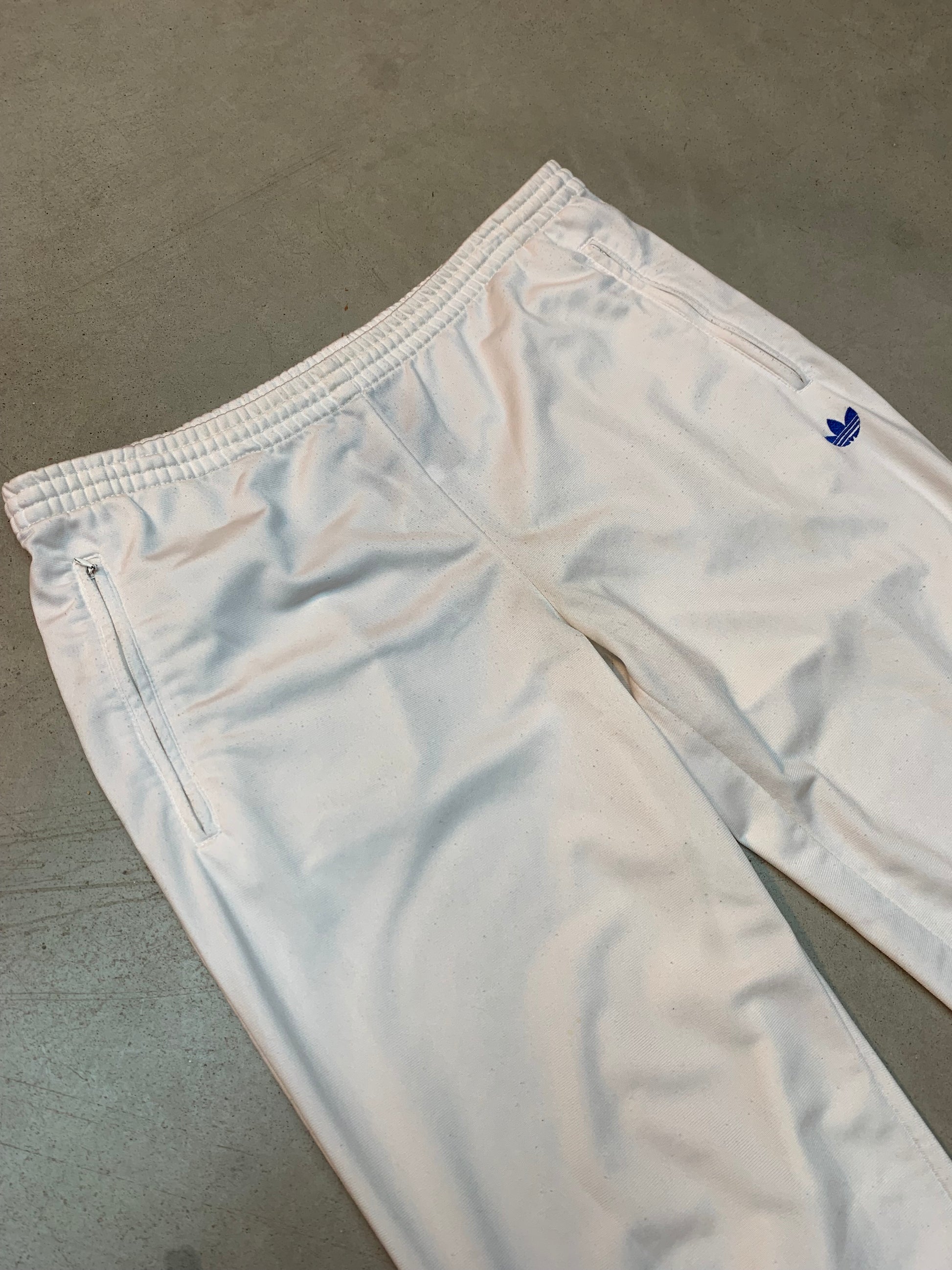 Men's Vintage Adidas White Track Pants - Men XL Retro Sportswear Bottoms with Blue, Red & Green Geometric Panels, Classic 90s Style Joggers for Streetwear or Training