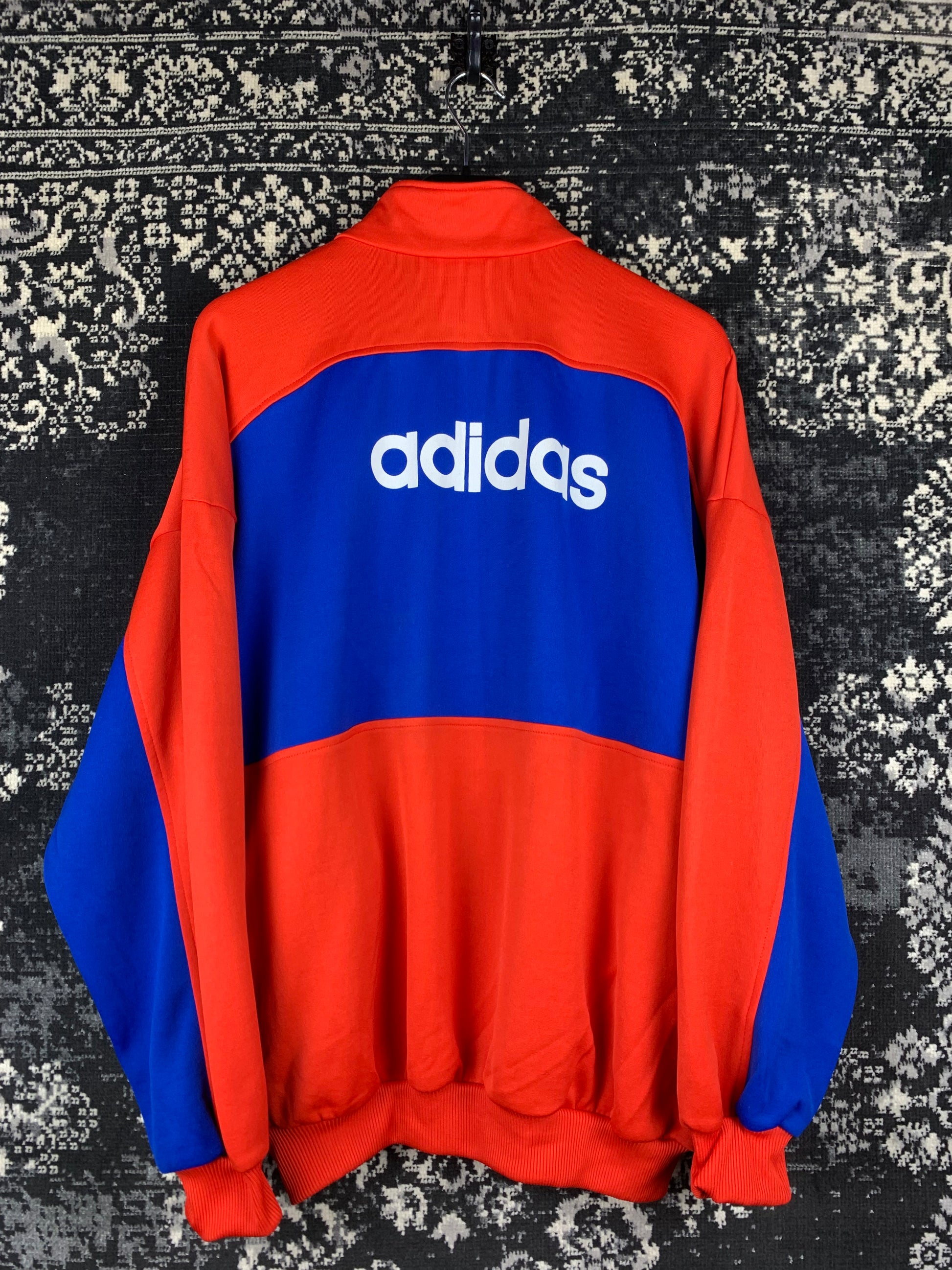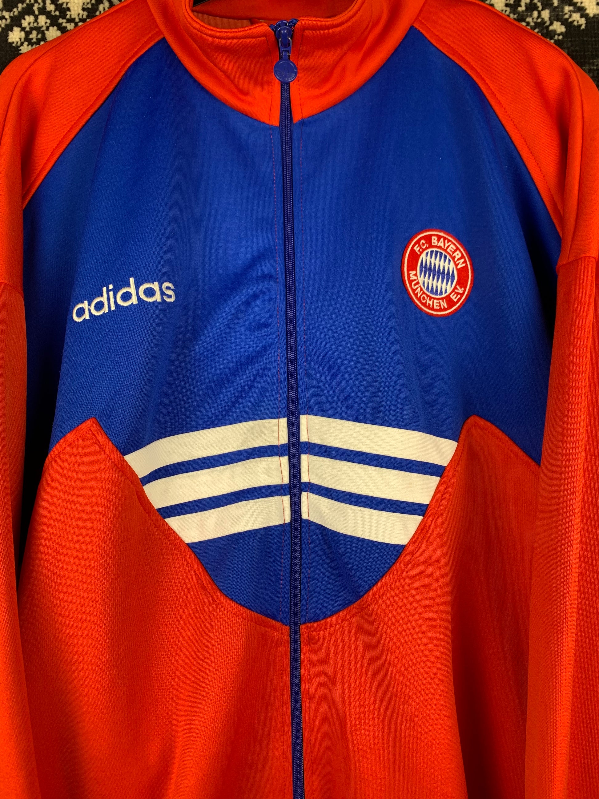 Men's Vintage Adidas FC Bayern Munich Track Jacket – Red and Blue Zip-Up Retro Sportswear – Oversized Football Style – L
