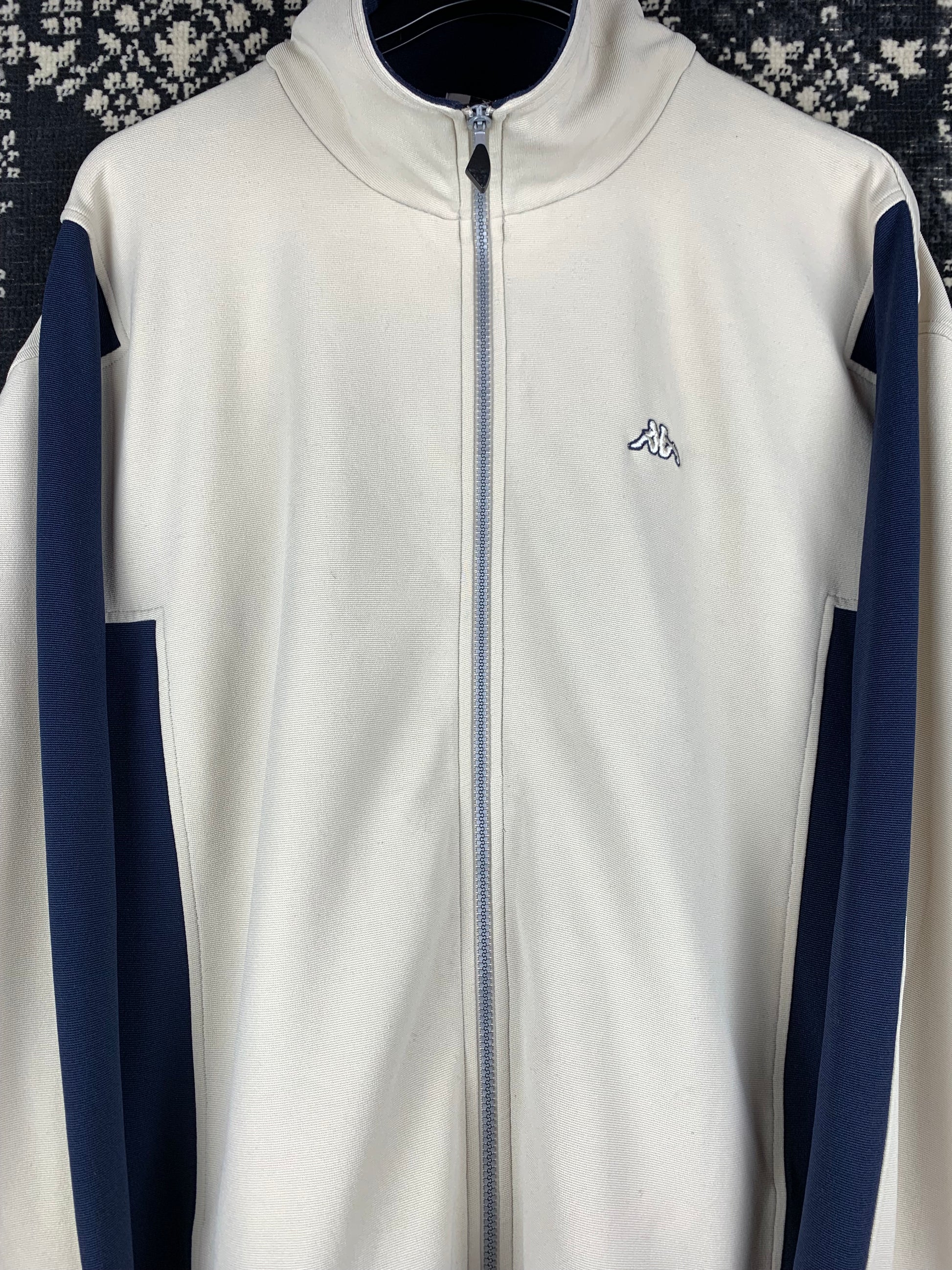 Men's Vintage Kappa Full Zip Track Jacket – Cream & Navy Retro Sportswear Top