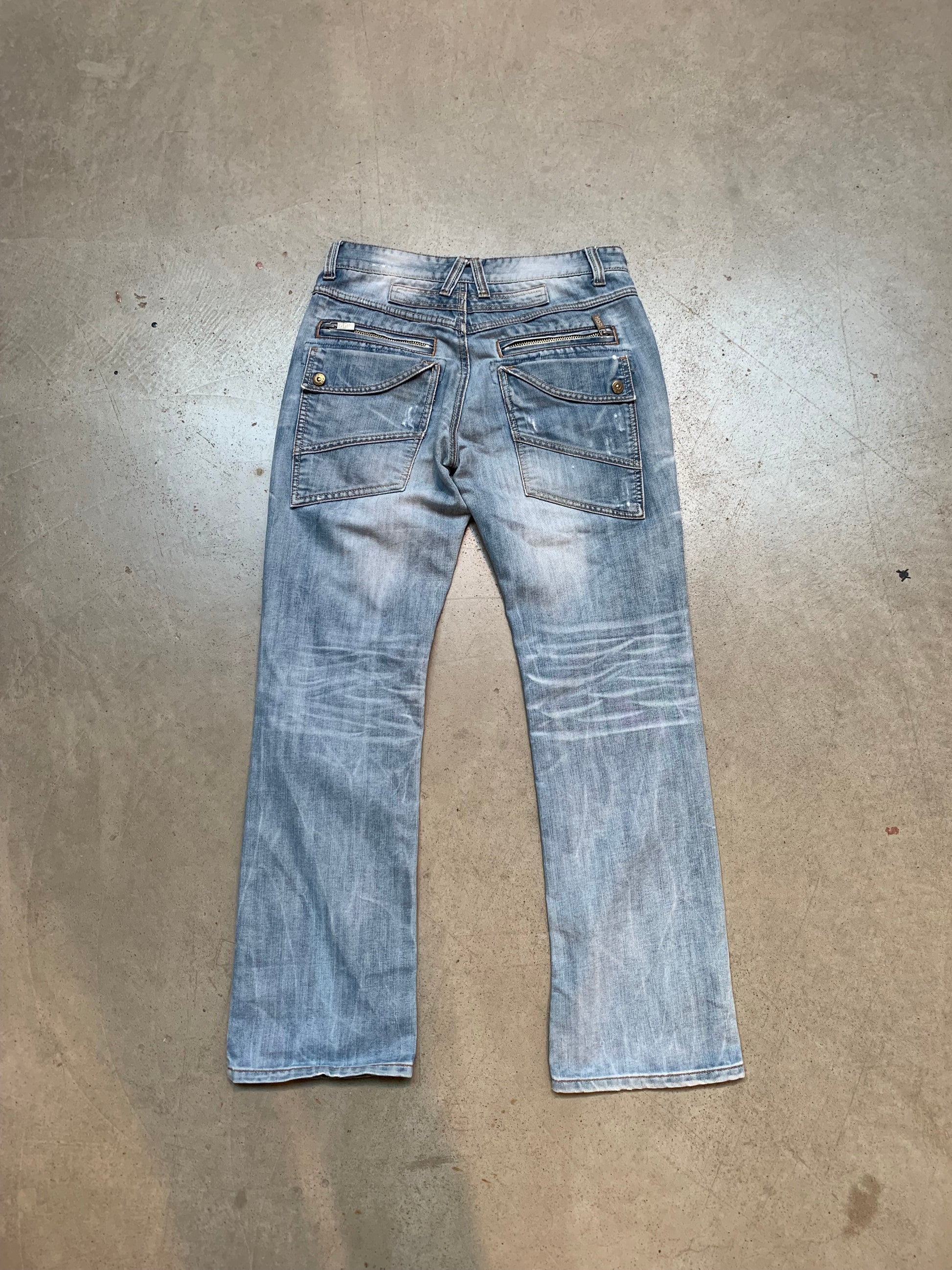 M.O.D Distressed Light Blue Denim Jeans Men’s 32x32 Y2K Zipper Pocket Straight Fit Faded Vintage Streetwear Urban Style Pants