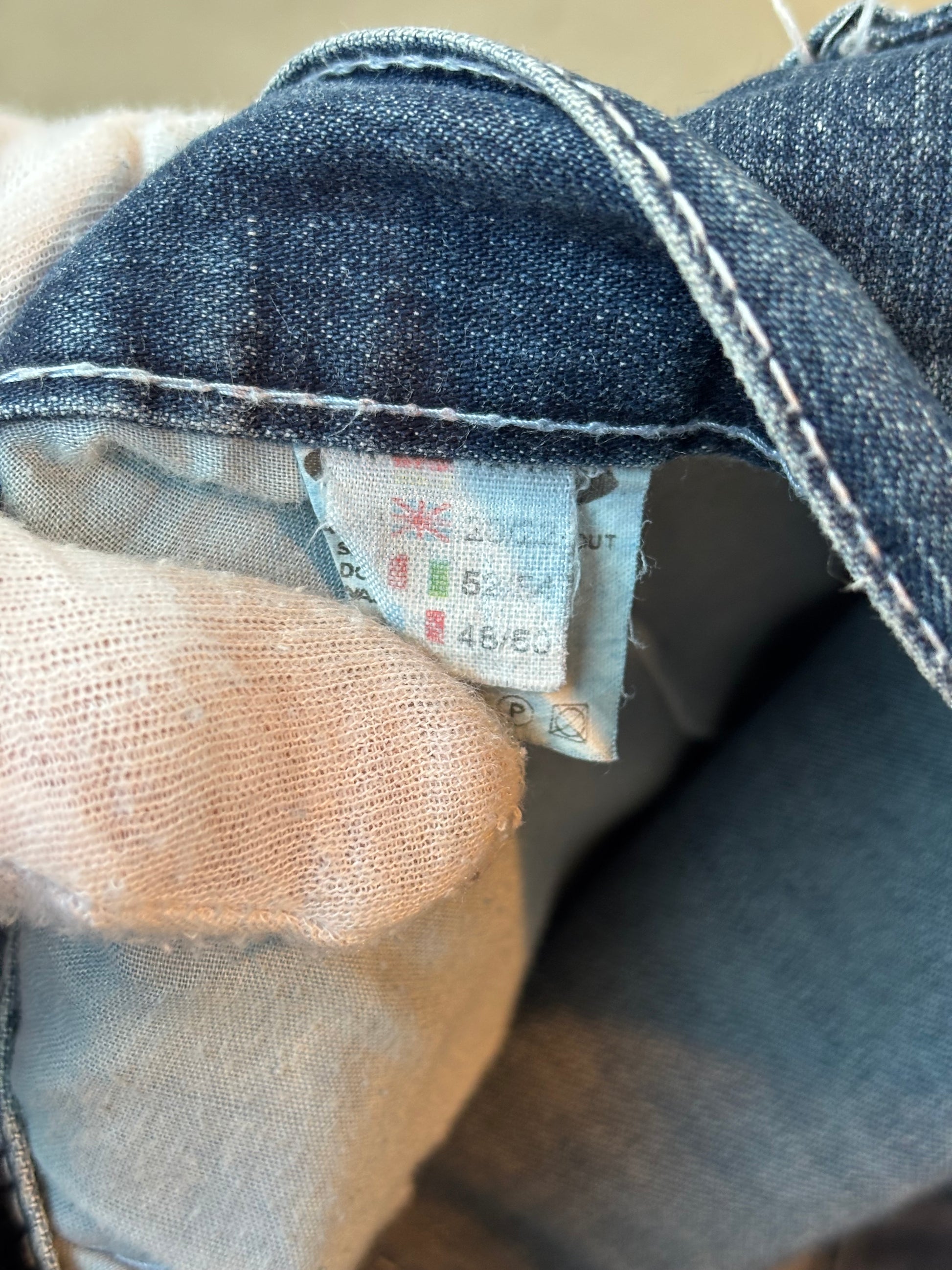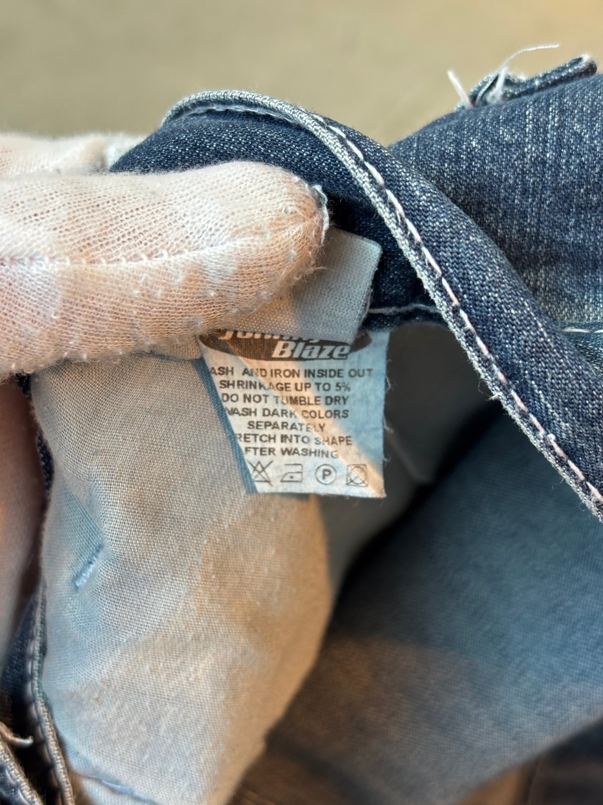 Johny Blaze Unisex M Denim Long Shorts Vintage Hip Hop Streetwear Baggy Blue Jeans Retro Utility Pockets Logo Patch