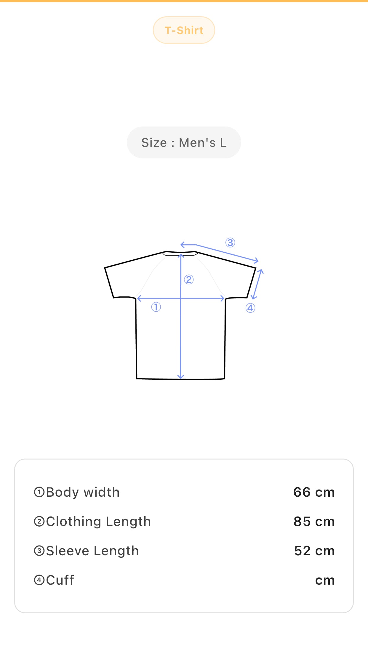 • Size: Men’s L — Body Width: 66 cm, Clothing Length: 85 cm, Sleeve Length: 52 cm