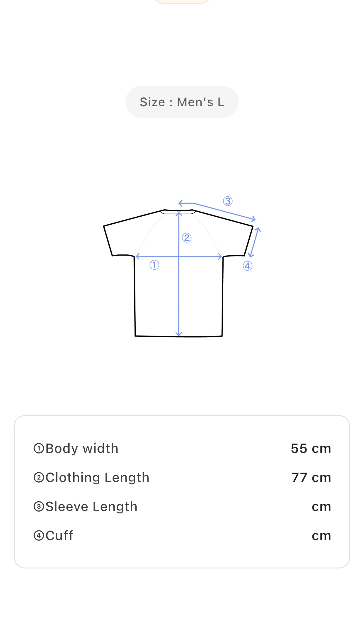• Size: Men's L — Body Width: 55 cm, Clothing Length: 77 cm