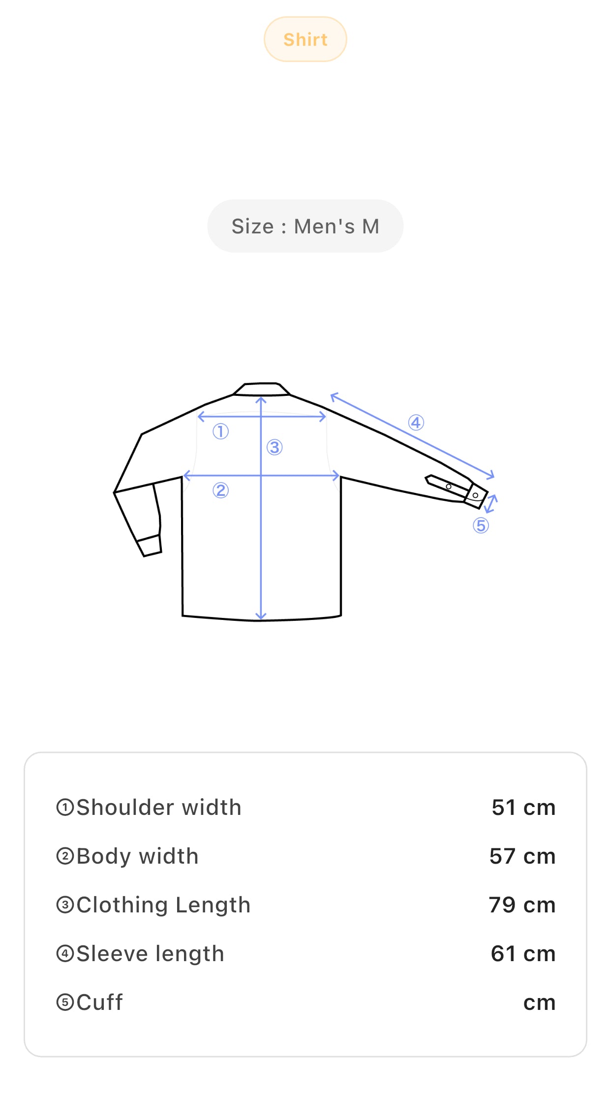 Size : Men’s MV Shoulder Width: 51 cm , Body Width: 57 cm , Clothing Length: 79 cm , Sleeve Length: 61 cm