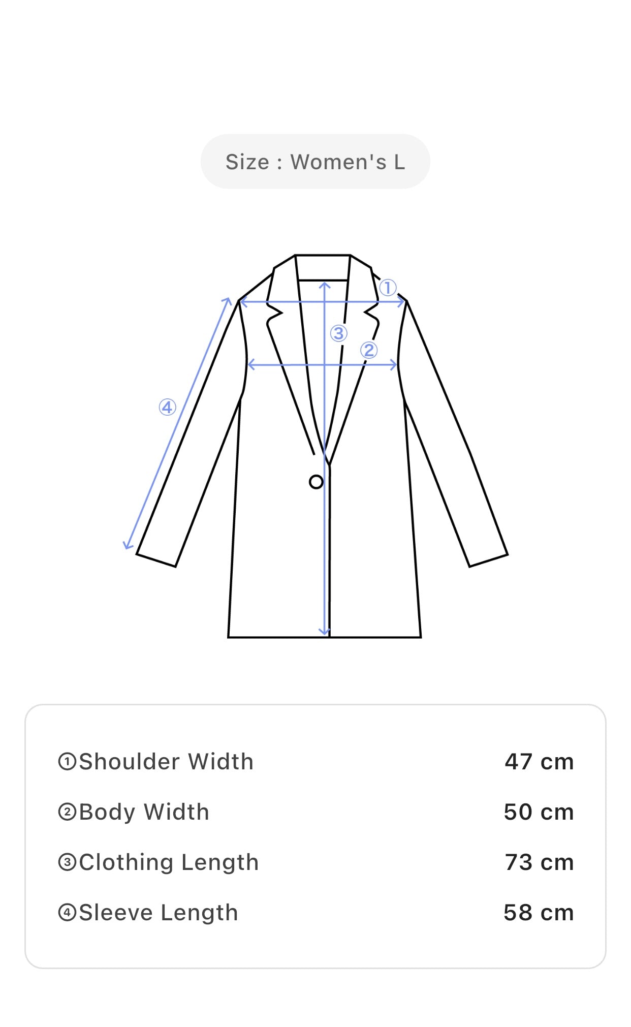 • Size: Women’s L (Shoulder Width 47 cm, Body Width 50 cm, Clothing Length 73 cm, Sleeve Length 58 cm)