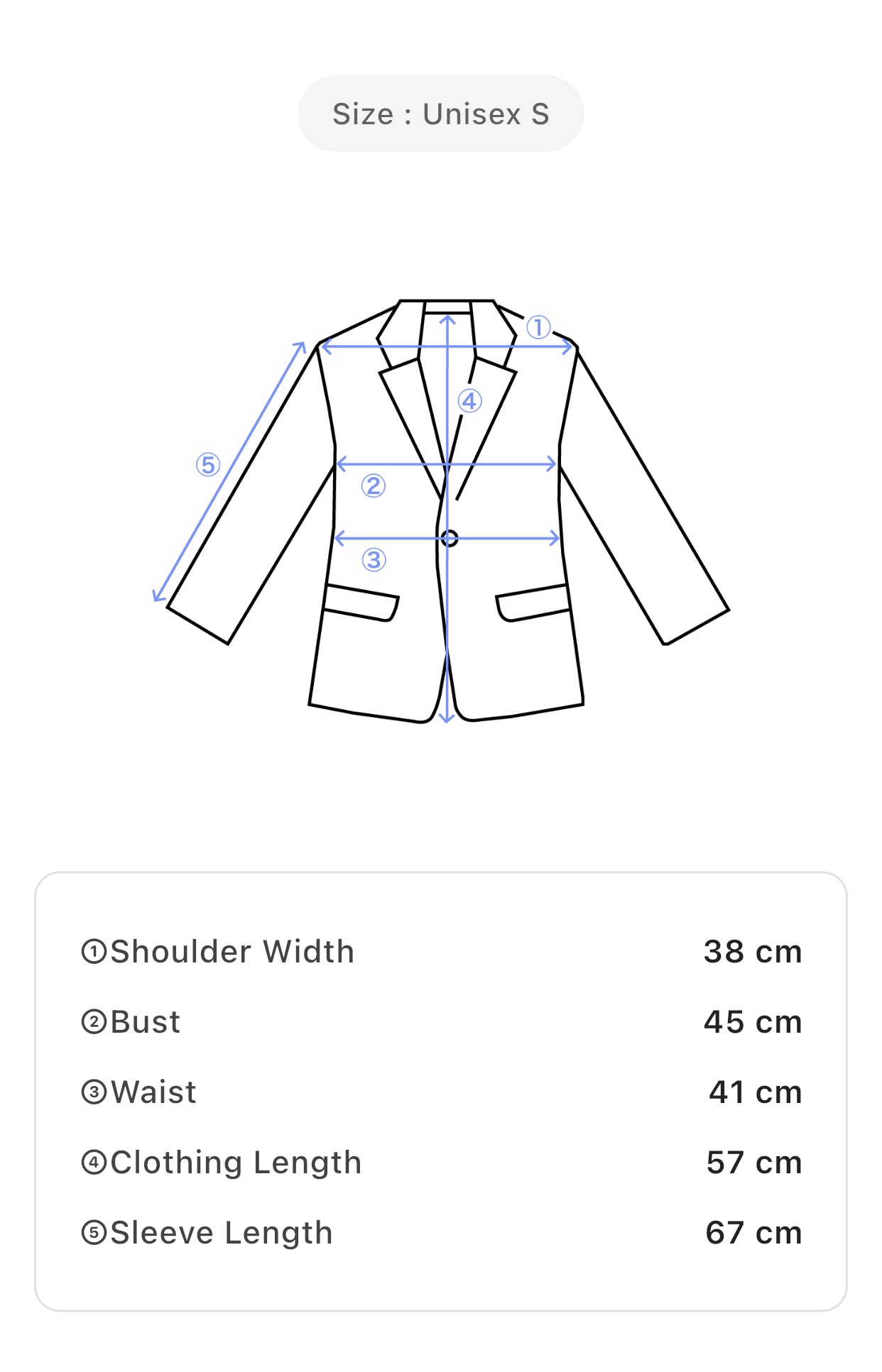 Size: Women’s S, Shoulder 38 cm, Bust 45 cm, Waist 41 cm, Clothing Length 57 cm, Sleeve Length 67 cm
