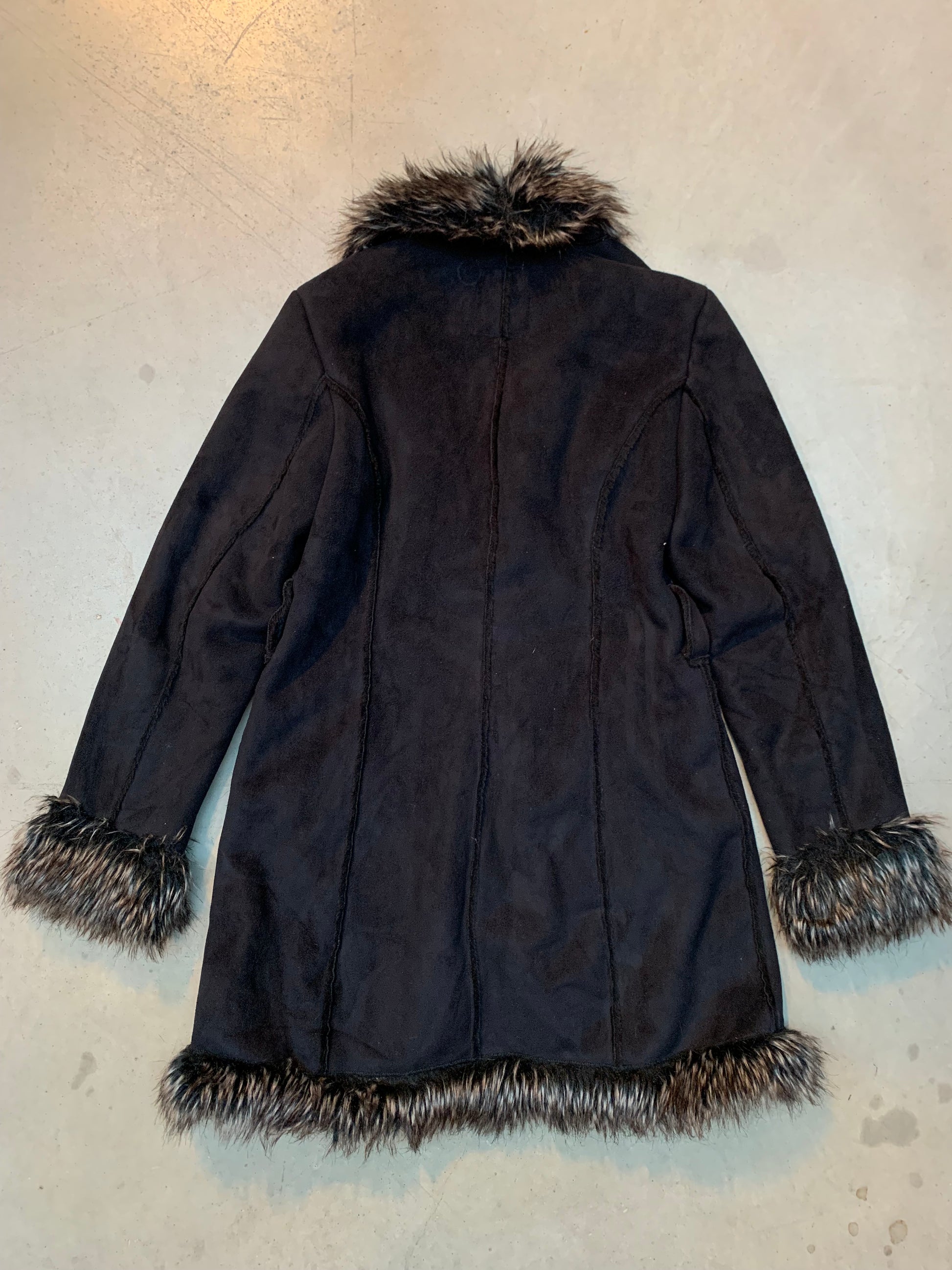 Vintage Women's Black Faux Suede Fur Trim Coat