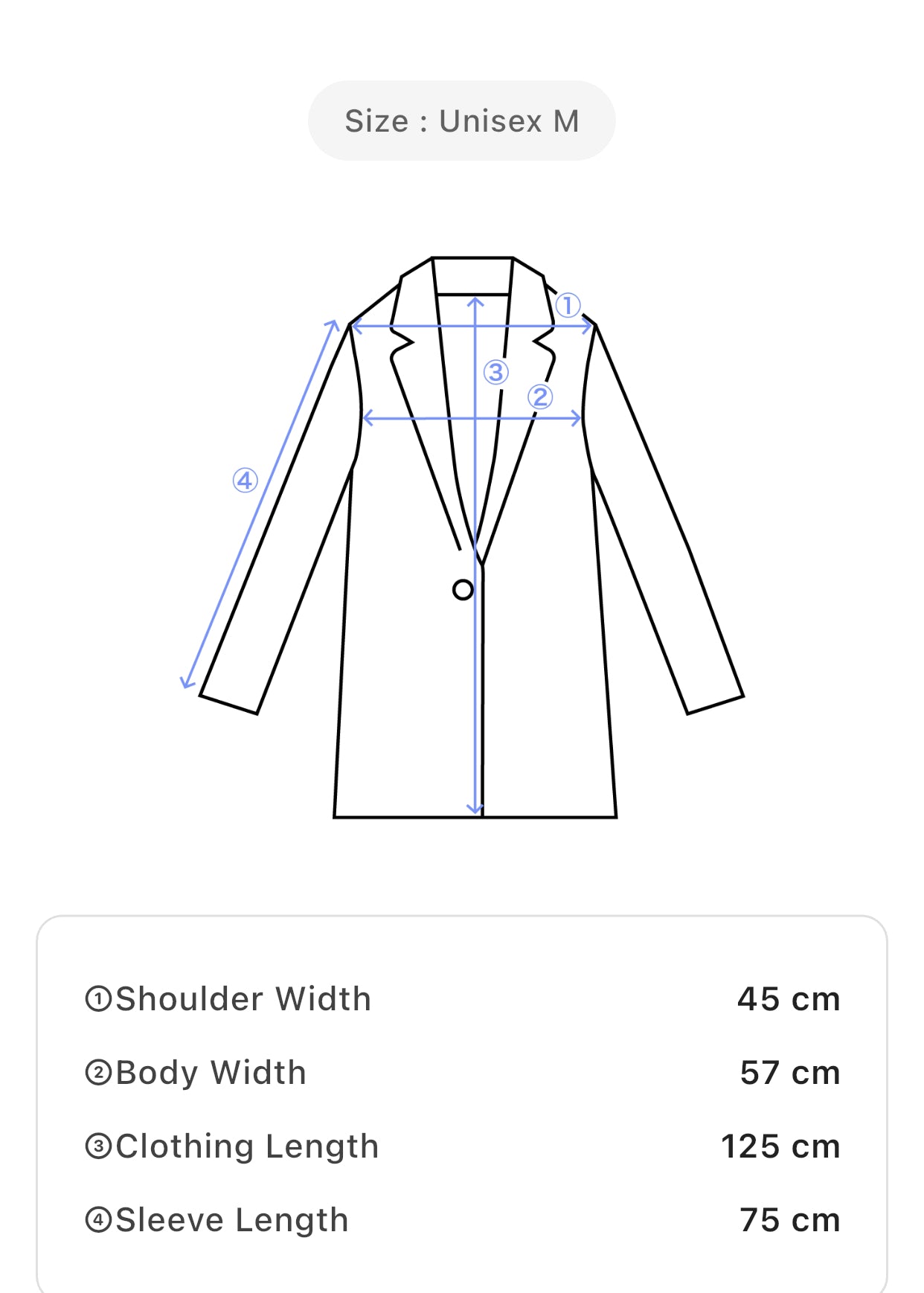 • Size: Women M, Shoulder Width 45 cm, Body Width 57 cm, Clothing Length 125 cm, Sleeve Length 75 cm