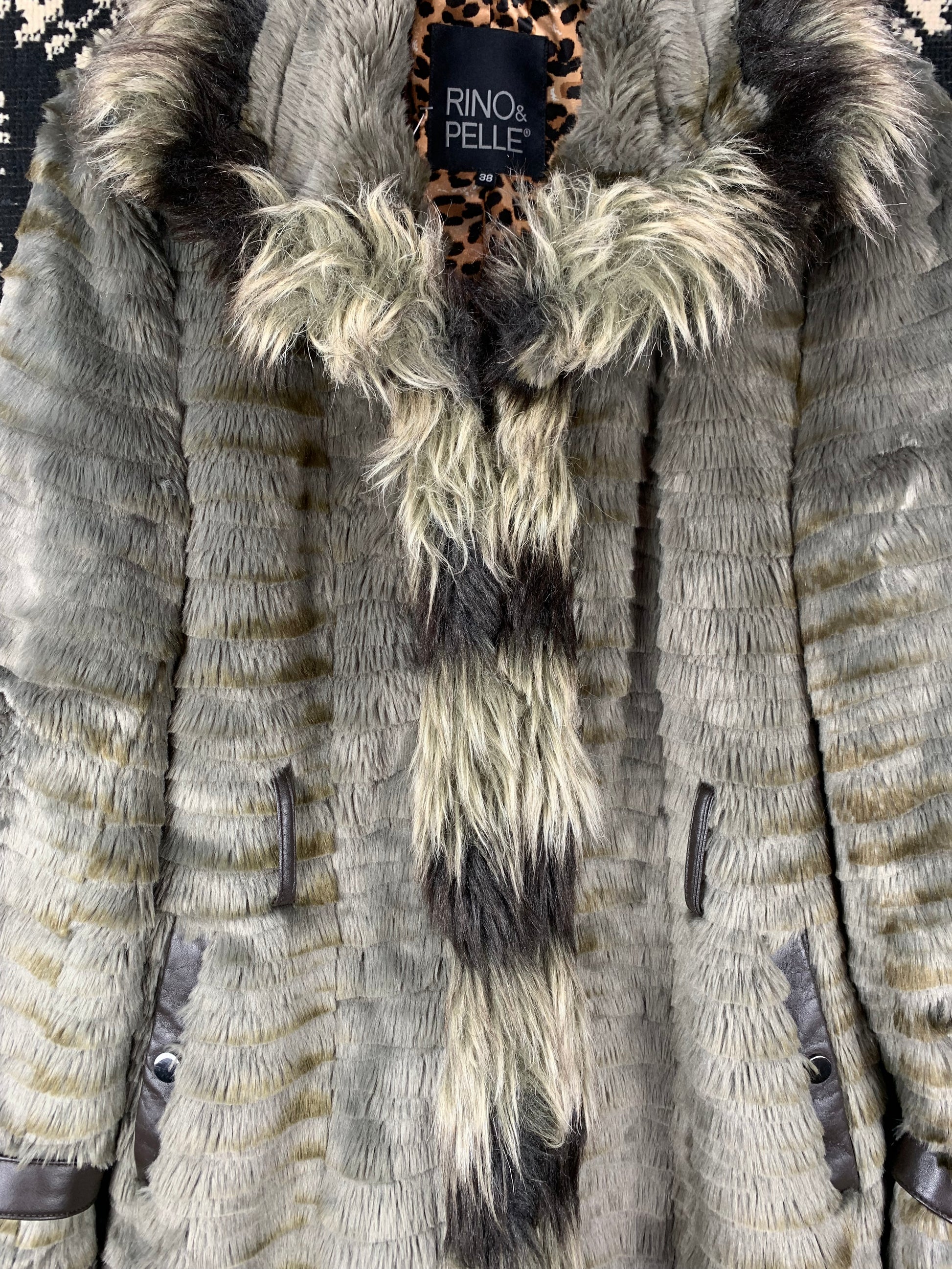 Women's Vintage Rino & Pelle Faux Fur Coat with Leopard Lining – Warm Winter Statement Outerwear – Size M