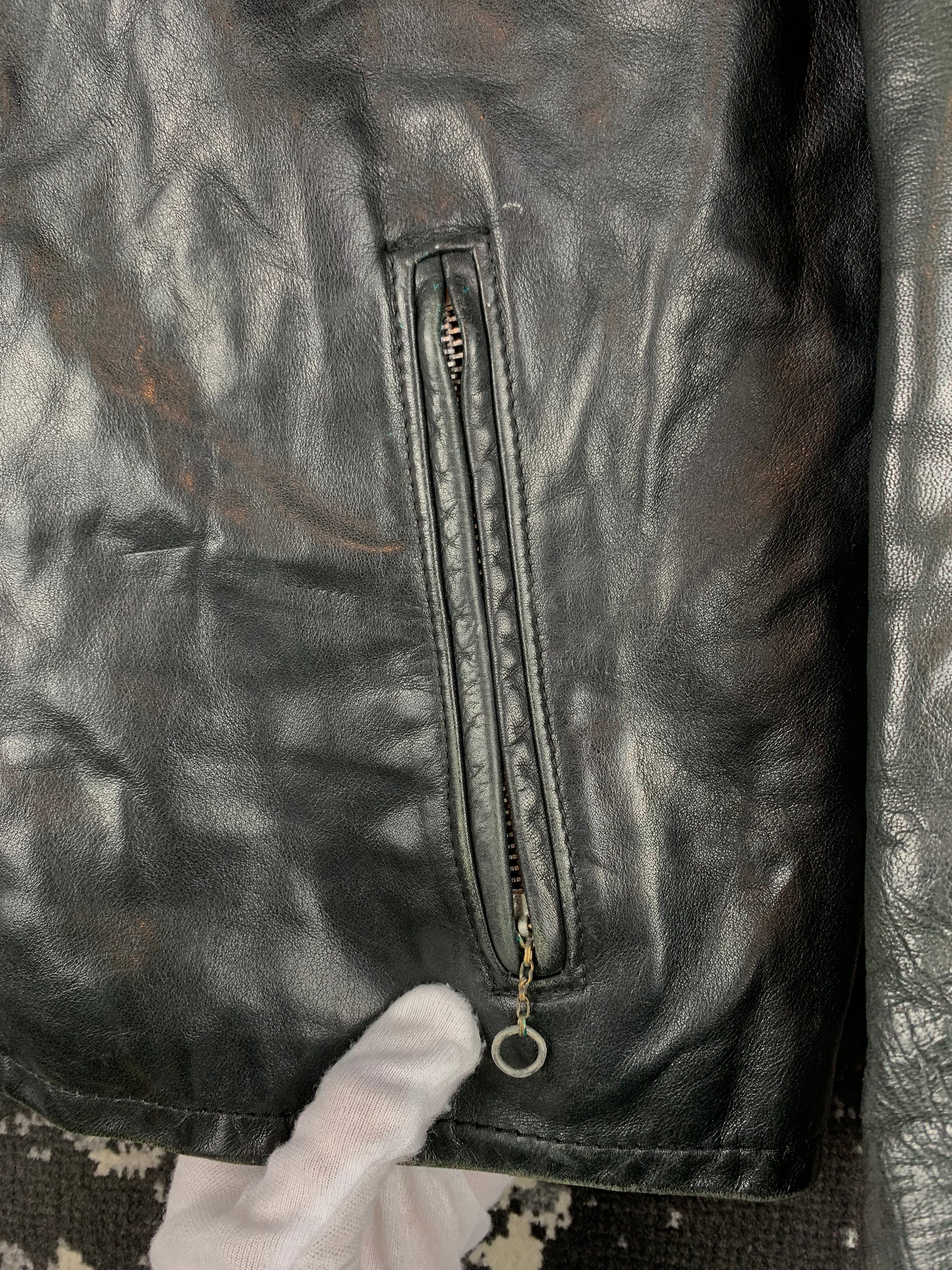 Women’s Vintage Schott NYC Black Leather Jacket – Moto Style Café Racer – Zippered Pockets & Cuffs – Belted Sides – Lined Biker Jacket