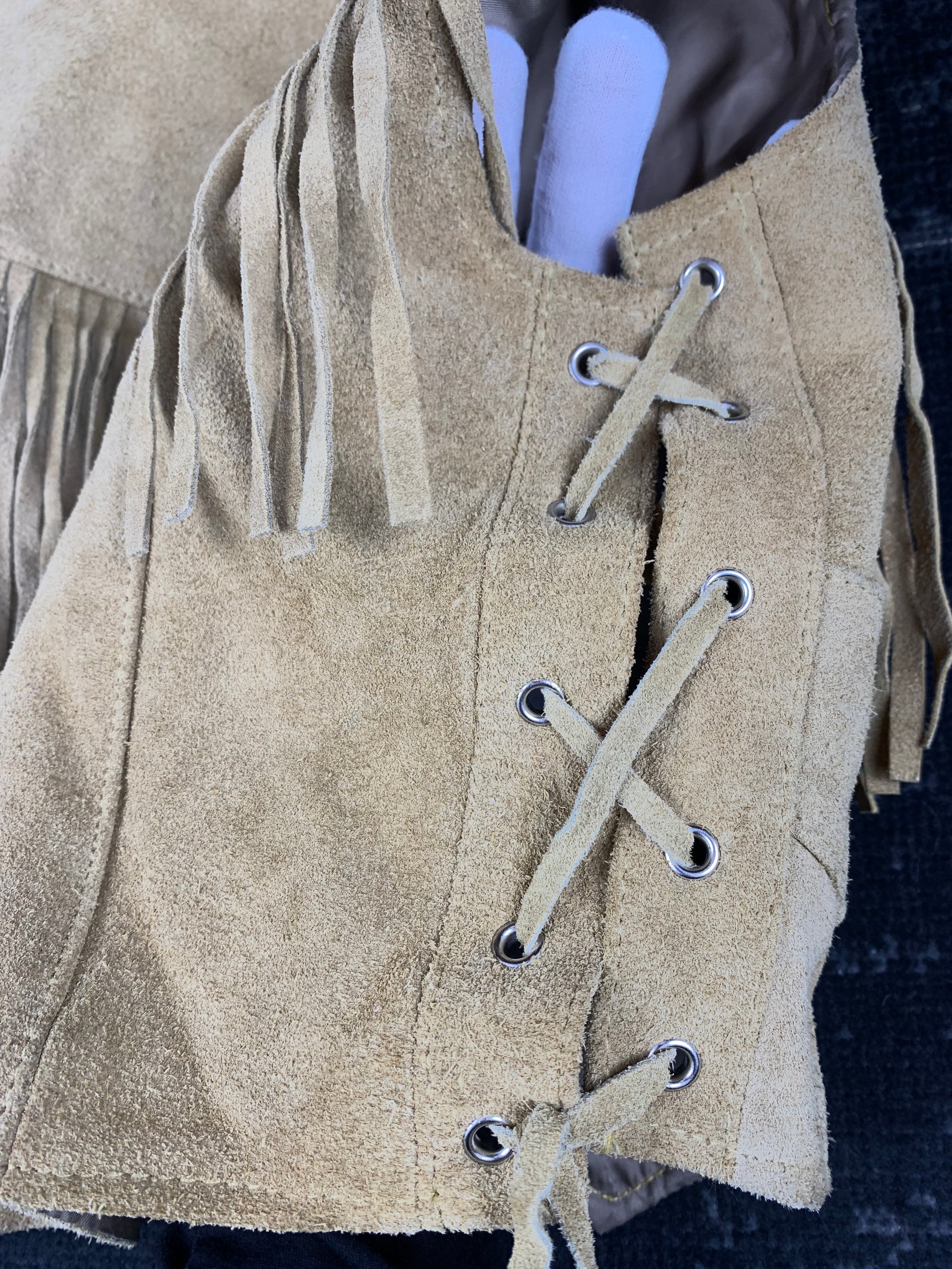 Women's Western Fringe Suede Leather Vest – Real Leather – Vintage Style – Running Bear – Size S