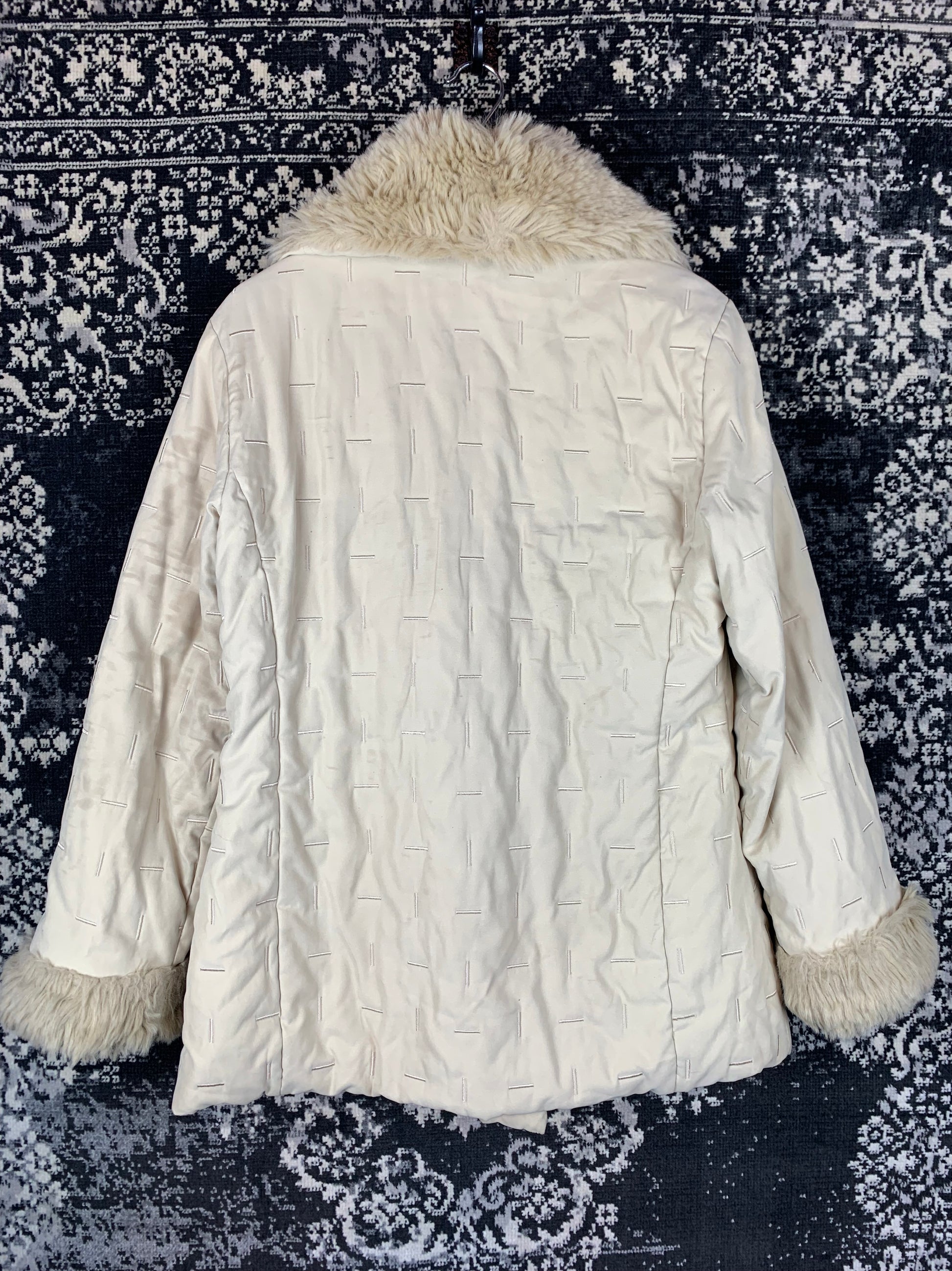 Derhy Y2K Cream Faux Fur Collar & Cuff Jacket
