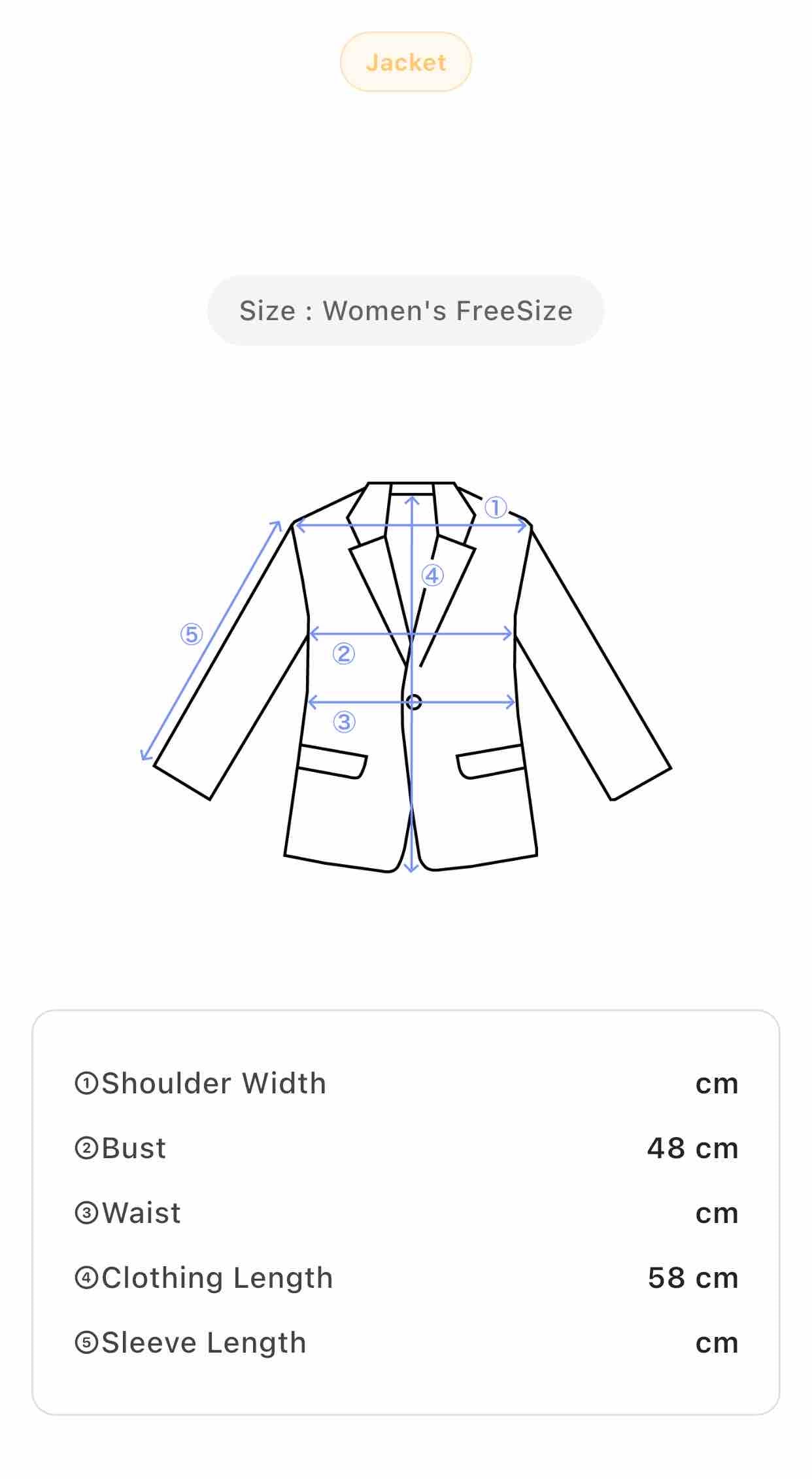 Size: Women's M — Bust: 48 cm, Clothing Length: 58 cm