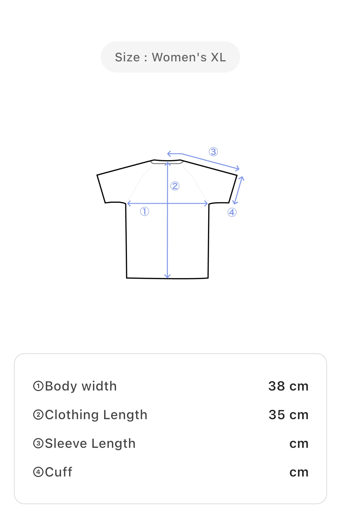 Size: Women’s XL — Body width: 38 cm, Clothing length: 35 cm