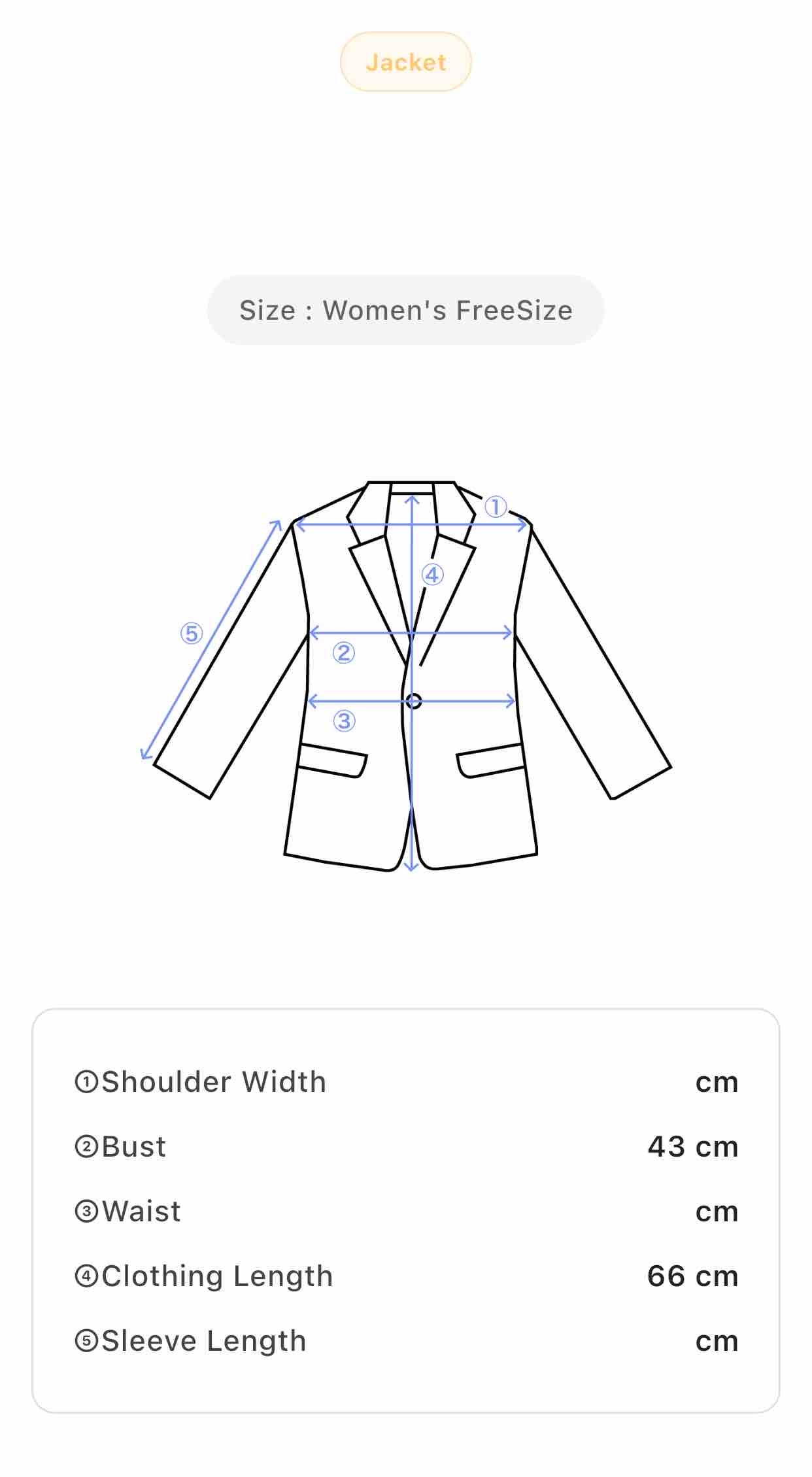 • Size Women’s XS (Bust 43 cm, Clothing Length 66 cm)