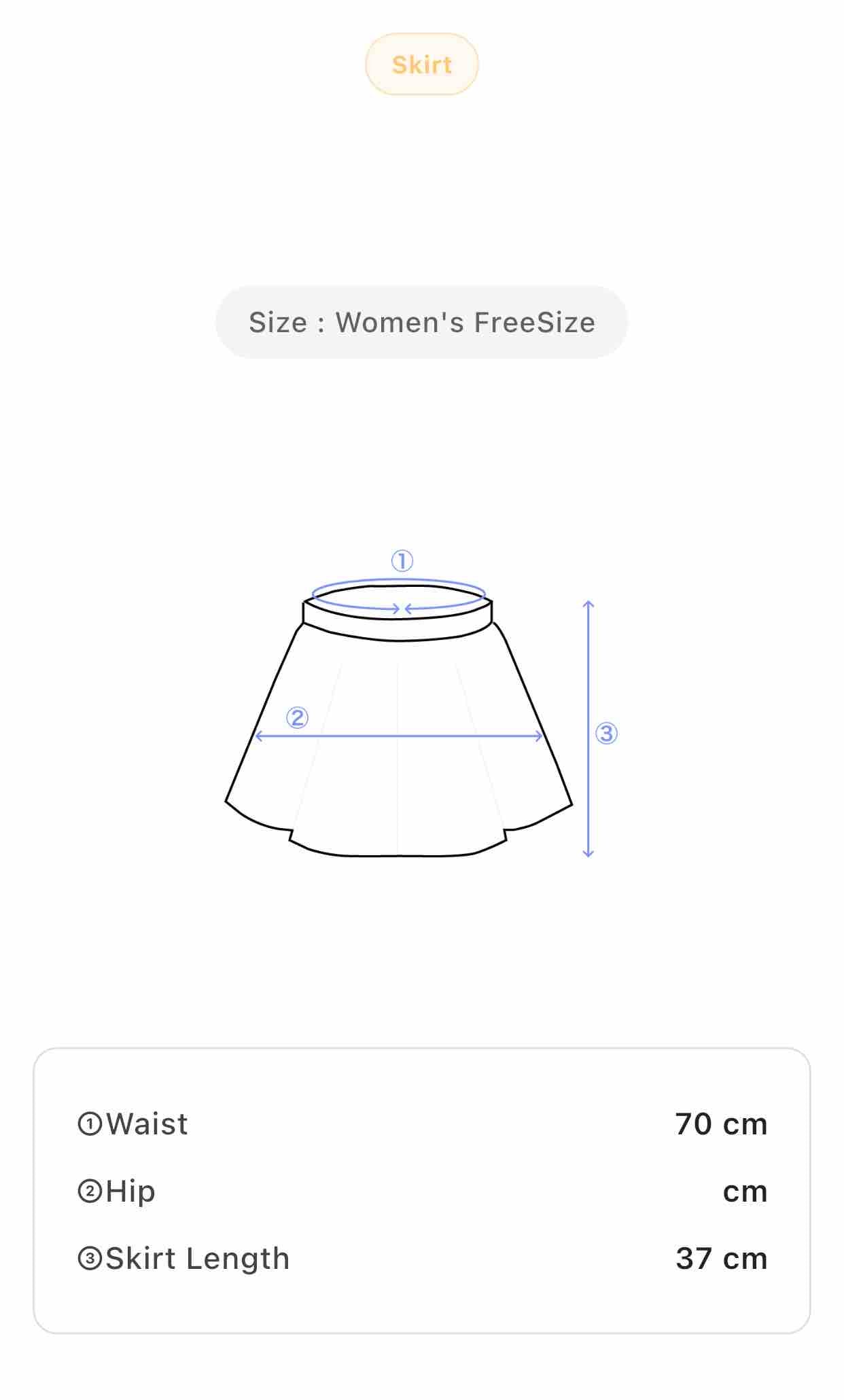 Size: Women's S – Waist: 70 cm, Skirt Length: 37 cm