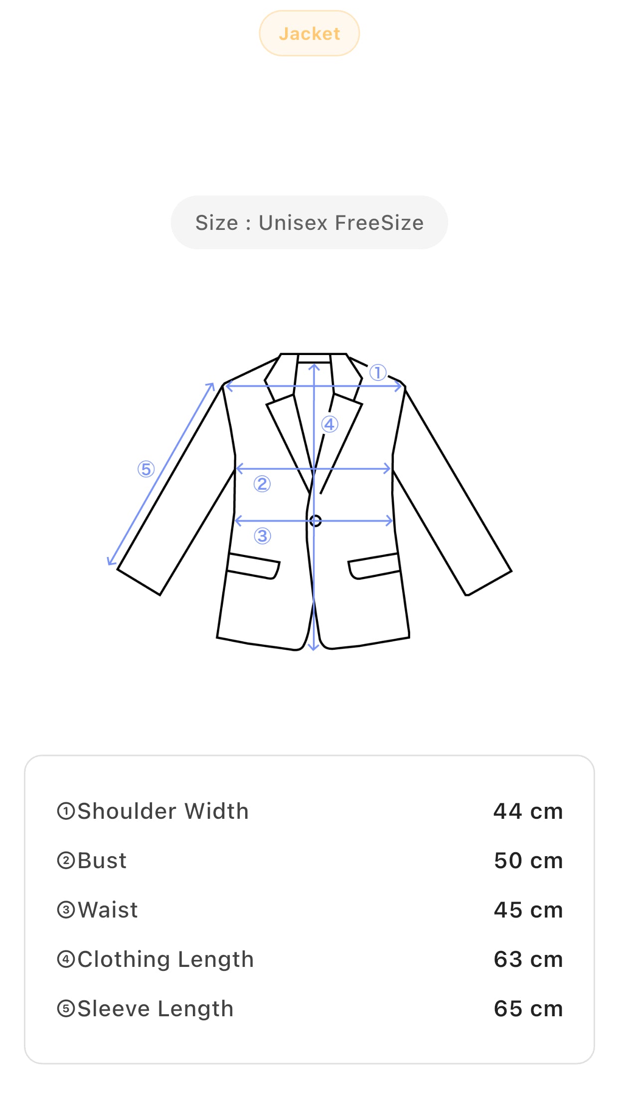 • Size: Women L – Shoulder Width: 44 cm, Bust: 50 cm, Waist: 45 cm, Clothing Length: 63 cm, Sleeve Length: 65 cm