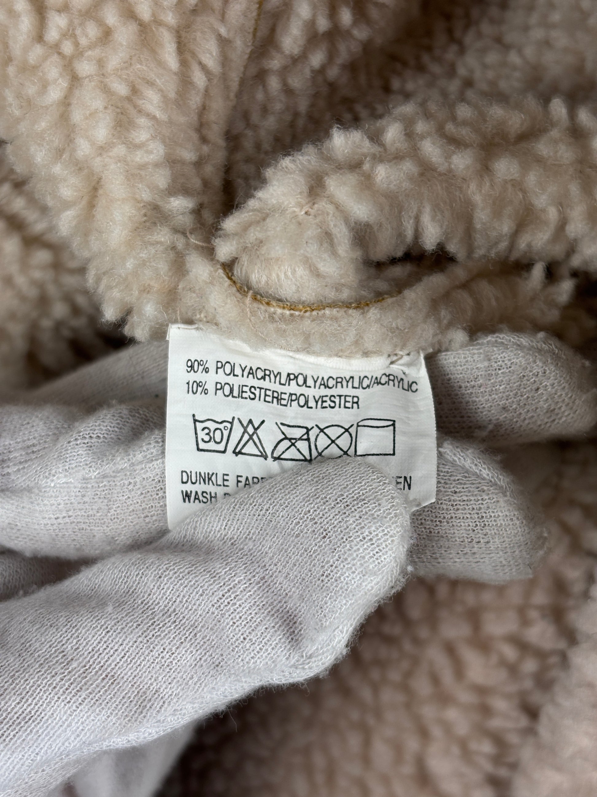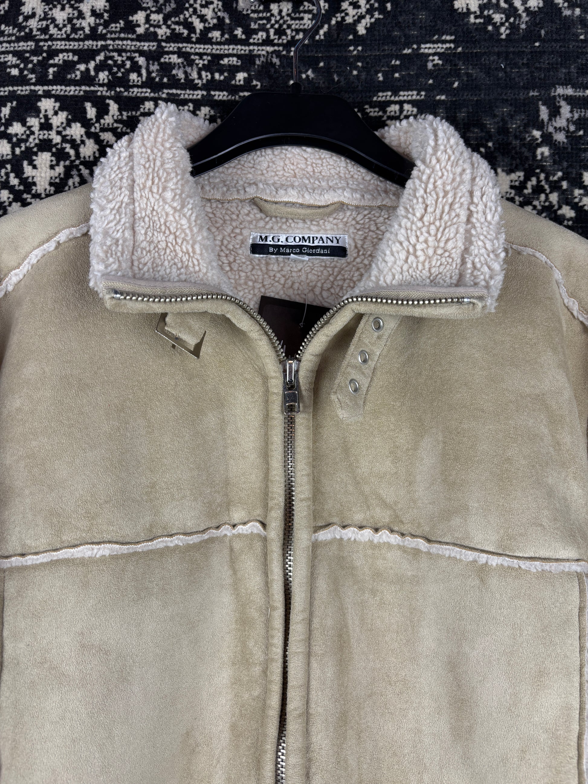 Women's Y2K Vintage Beige Faux Suede Jacket with Warm Inner Lining – Shearling Style Zip-Up – XXL