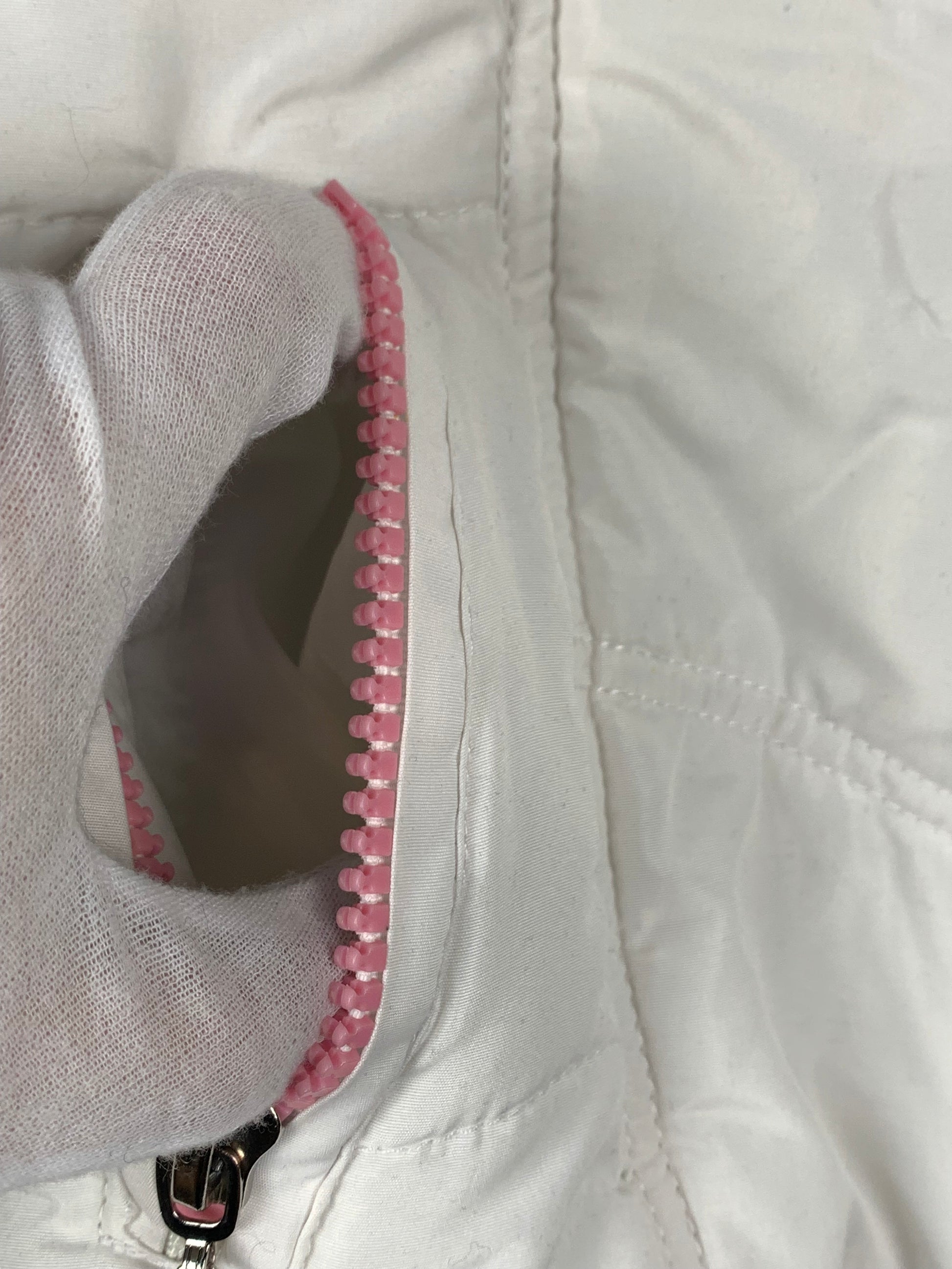Womens Y2K Vintage White Everlast Puffer Vest - 2000s Sportswear Sleeveless Quilted Gilet with Pink Zip Detail