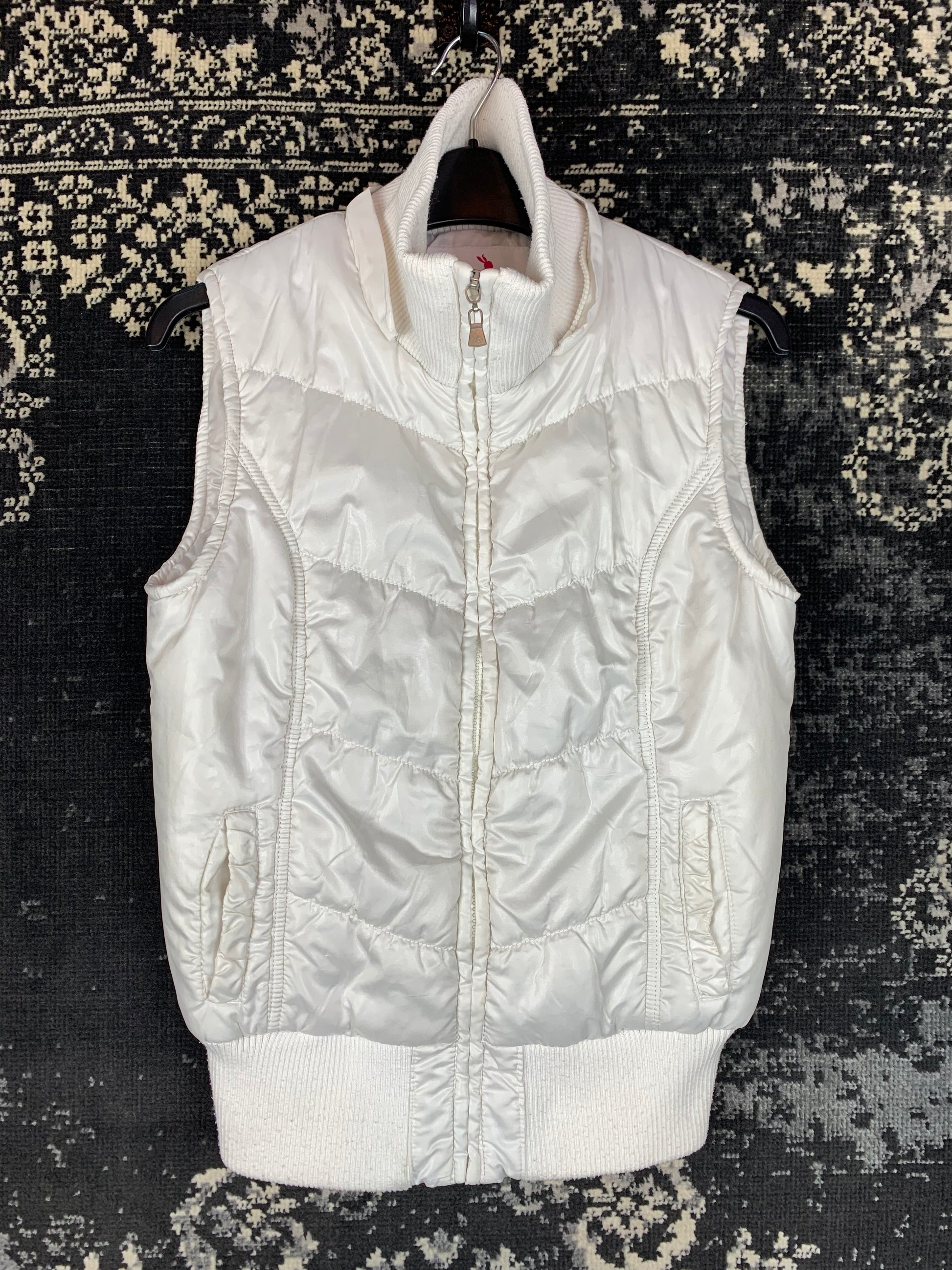 Tally Weijl Y2K White Puffer Vest with Ribbed Knit Collar and Hem - Quilted Zip-Up Sleeveless Jacket - Women's Size S Retro Streetwear Layer