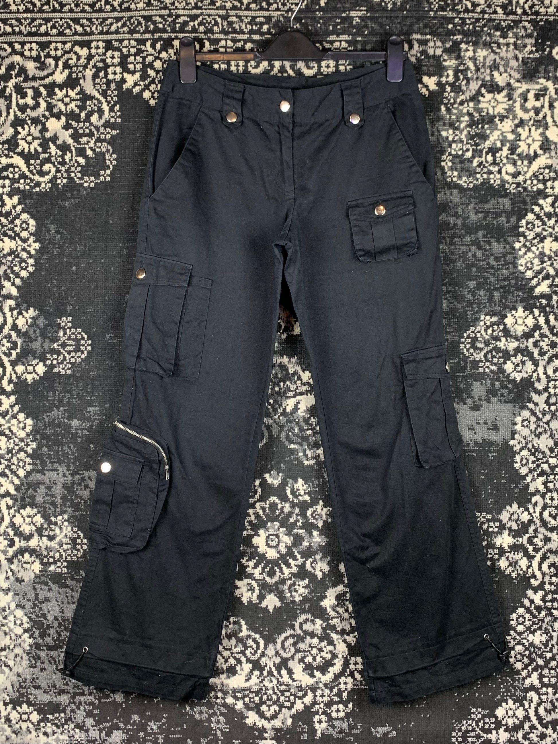Y2K Vintage Black Men Alternative Cargo Pants with Zippered Pocket Details and Multi-Pocket Utility Design