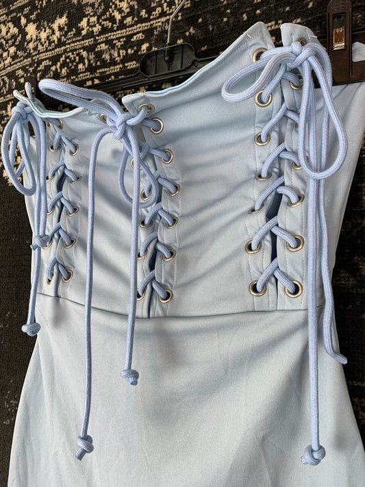 Y2K Women’s Light Blue Lace-Up Bodycon Mini Dress