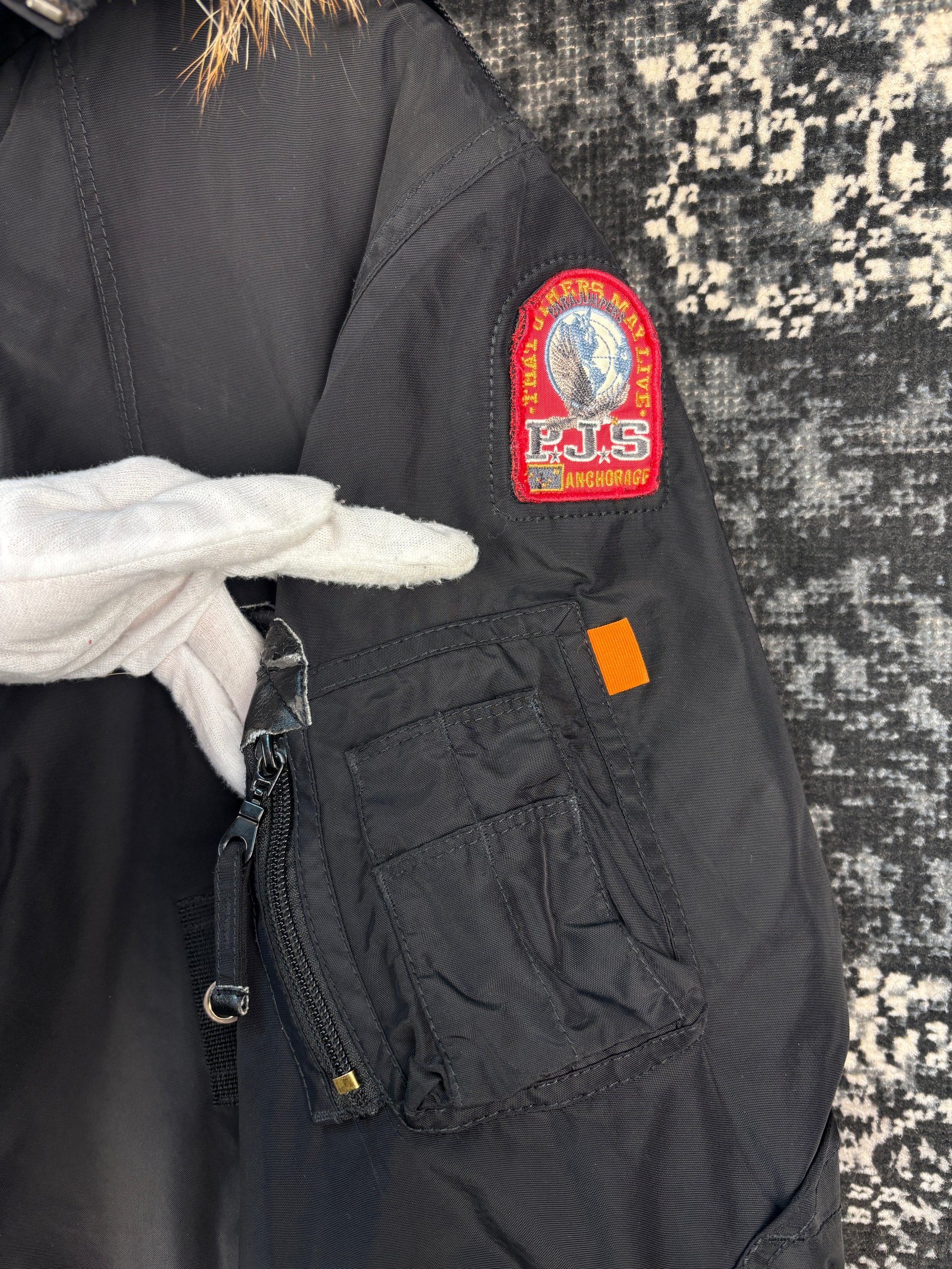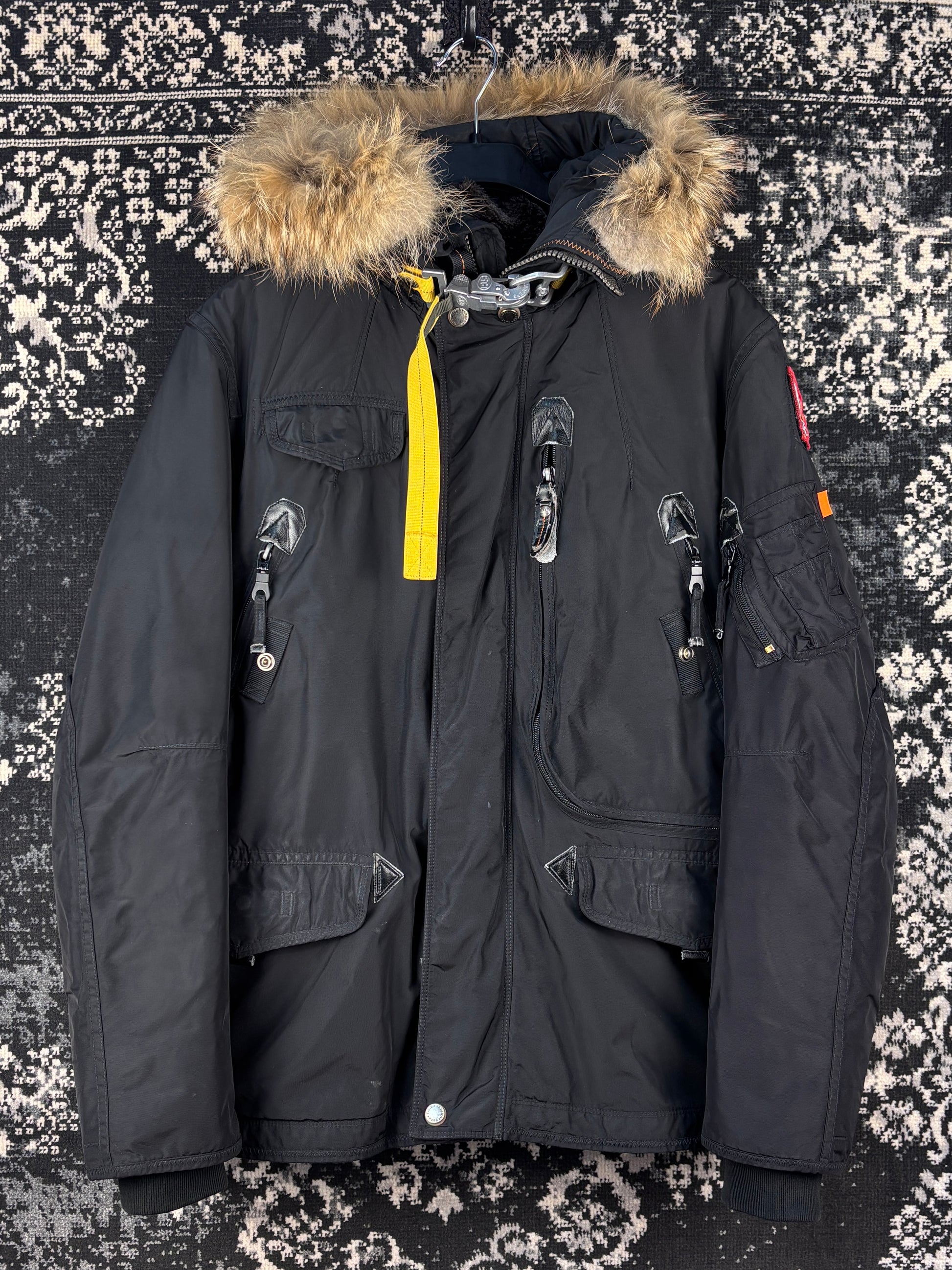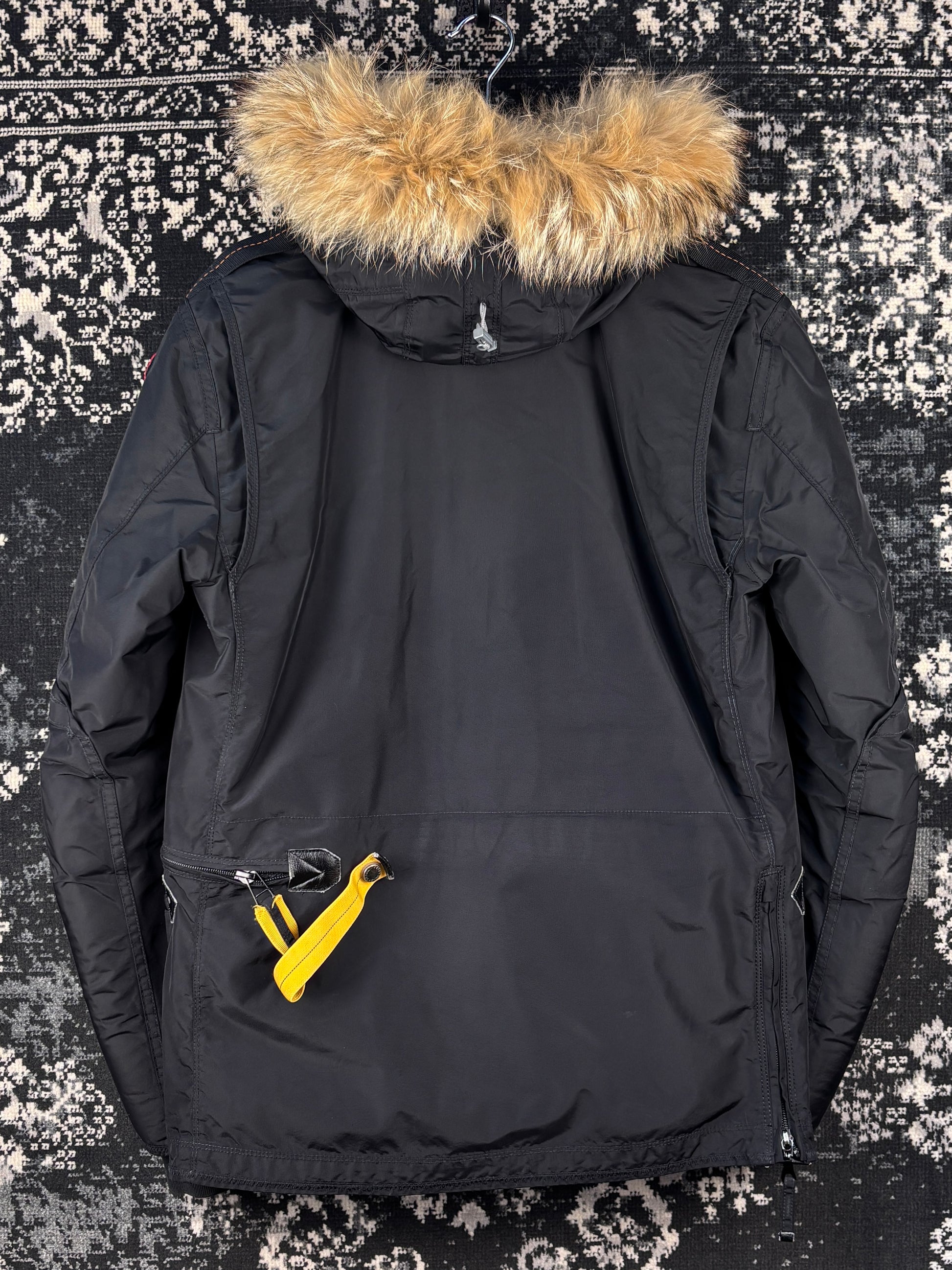 Mens Parajumpers Black Winter Jacket Masterpiece Series Fur Hood Heavy Parka Size M