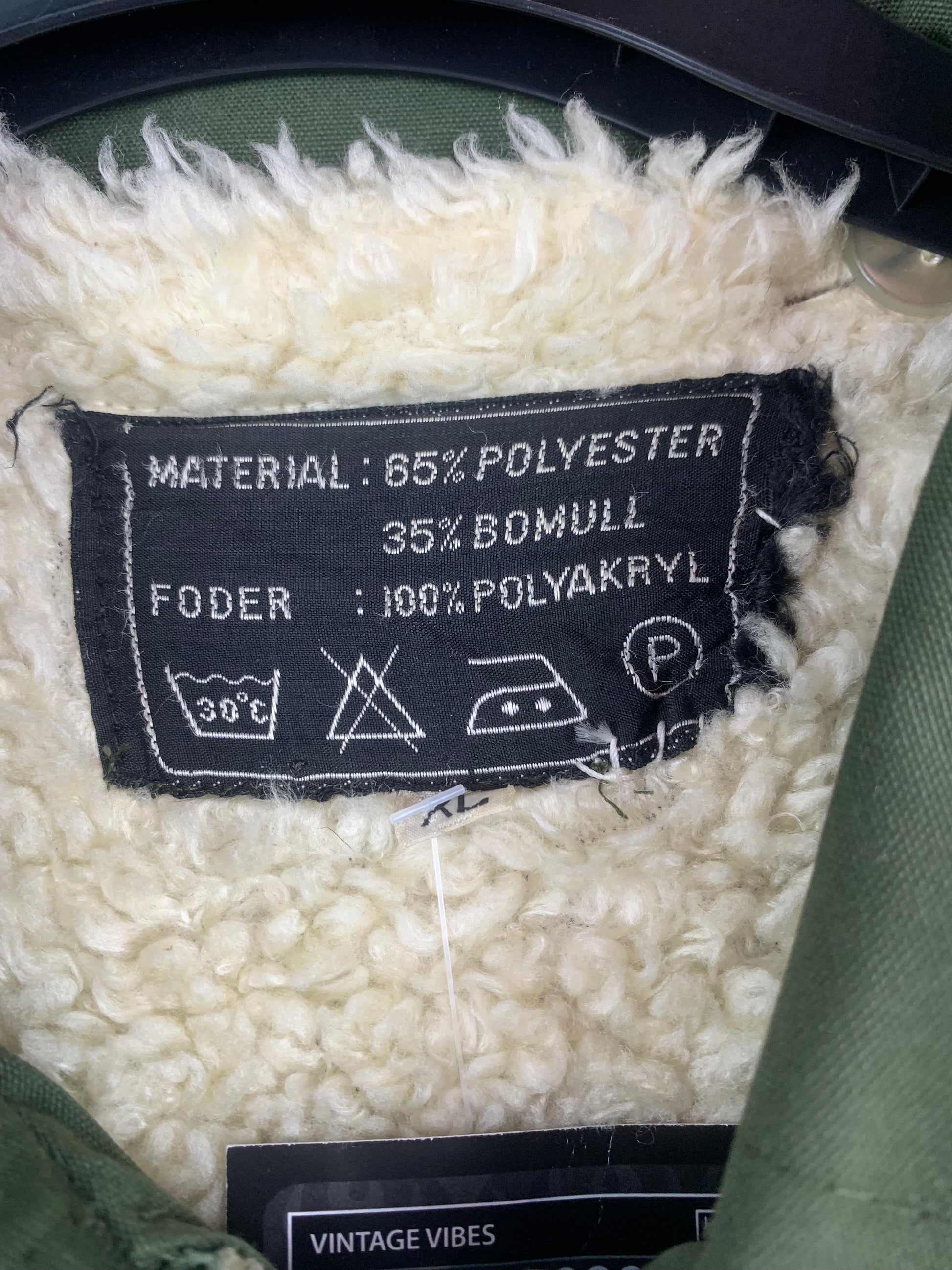 Mens Vintage Army Green Heavyweight Winter Coat Sherpa Lined Button Up Utility Jacket Oversized Fit
