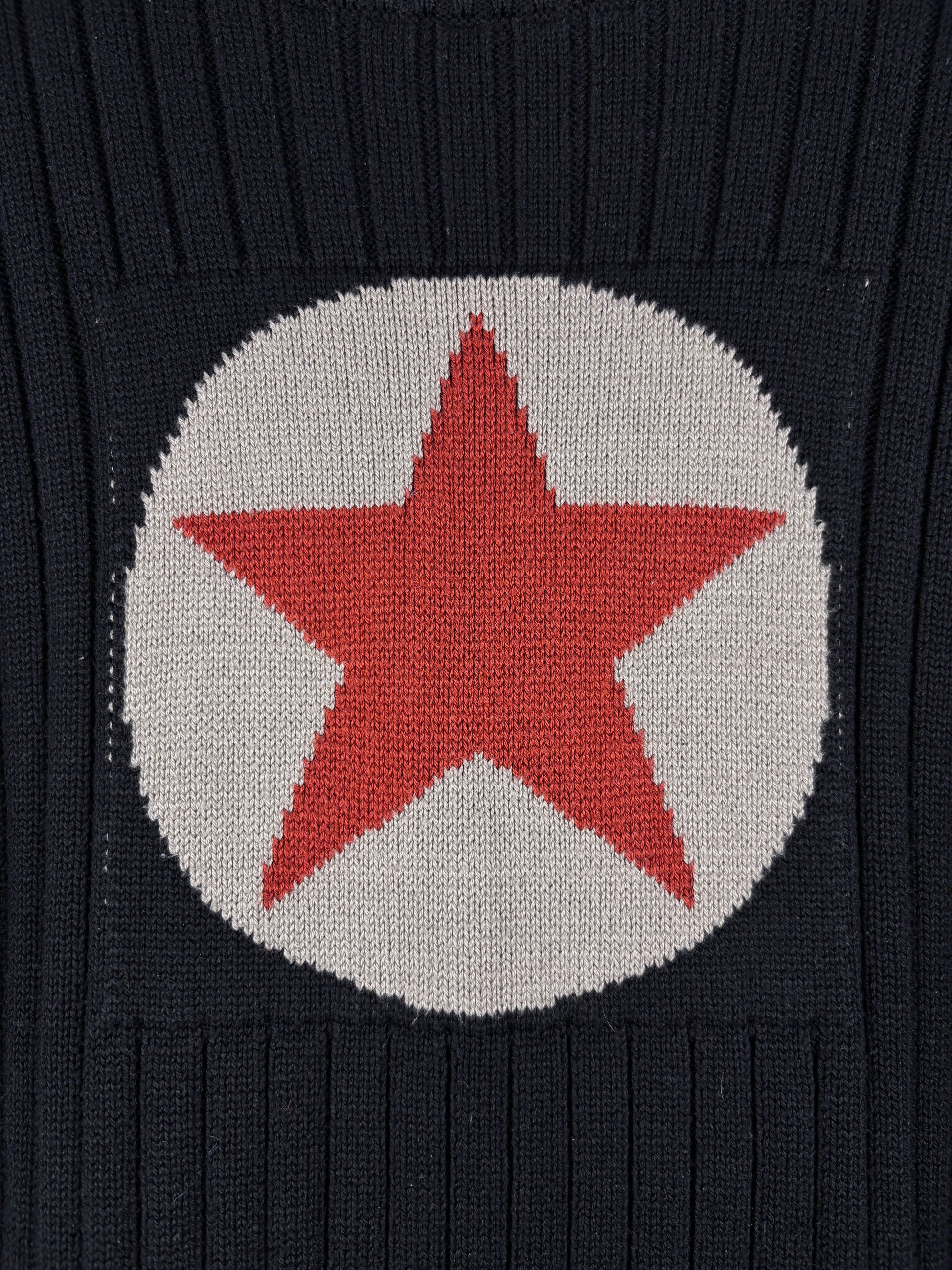 Mens Y2K S. Oliver Black Ribbed Knit Sweater Red Star Graphic Crewneck
