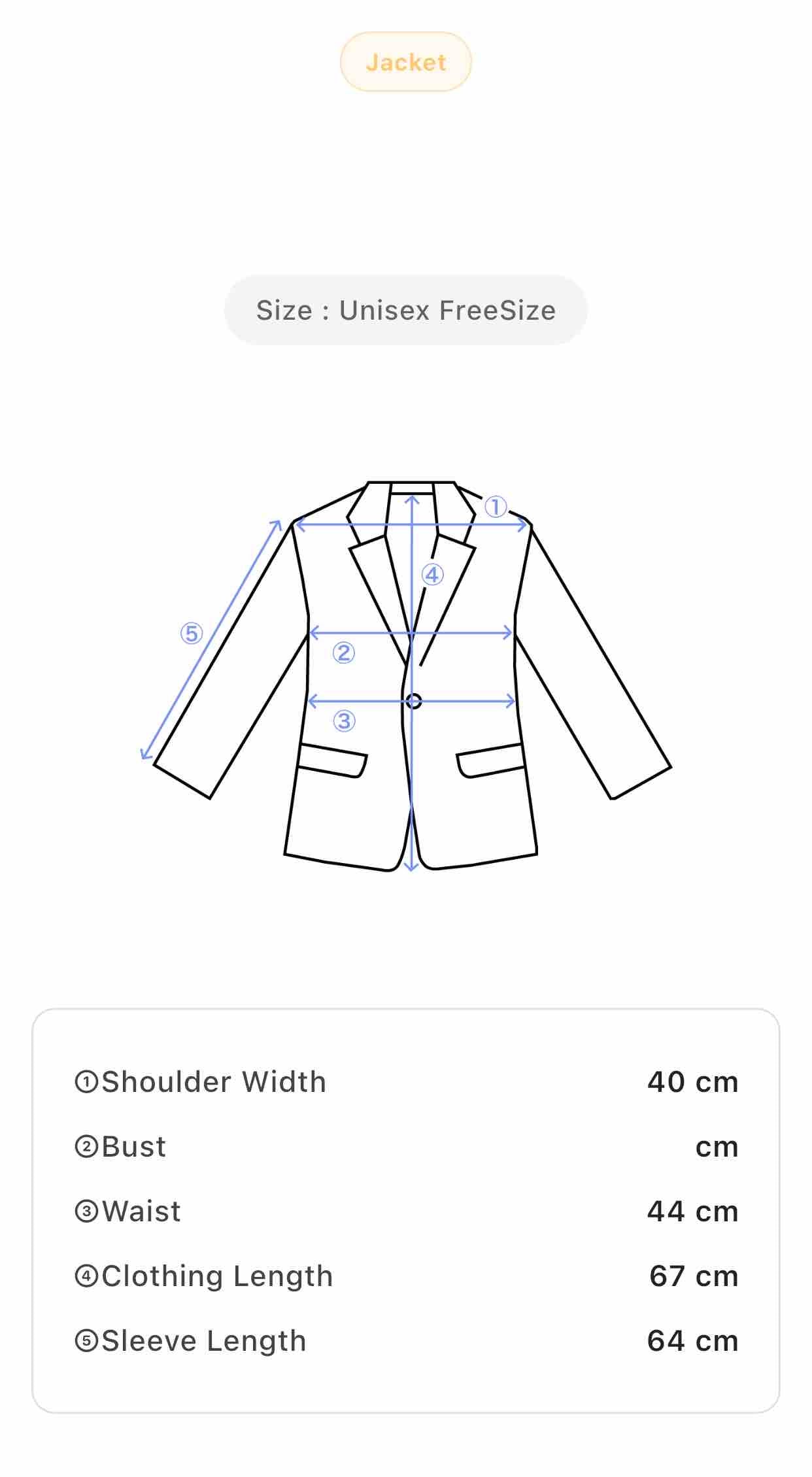 Size: Women M Shoulder Width: 40 cm Waist: 44 cm Clothing Length: 67 cm Sleeve Length: 64 cm