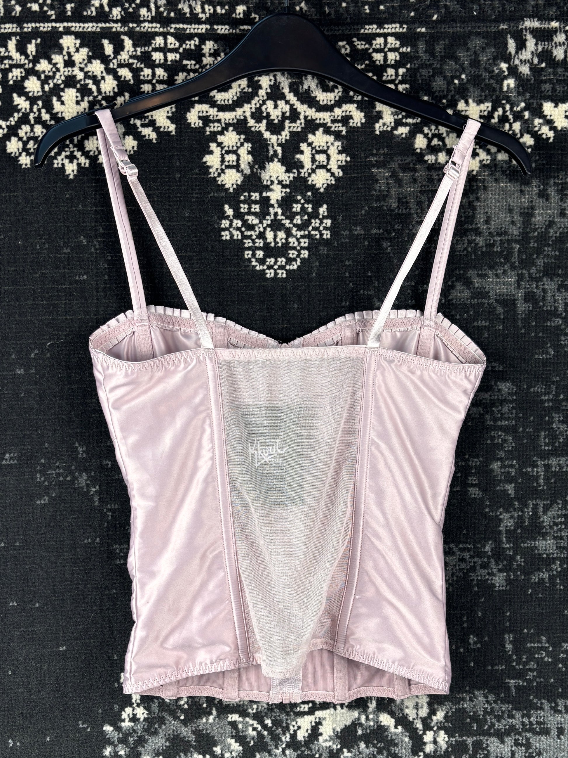 Womens Y2K Coquette Light Pink Corset Top - Satin Bustier Camisole Zip Front Romantic Party Clubwear Size S