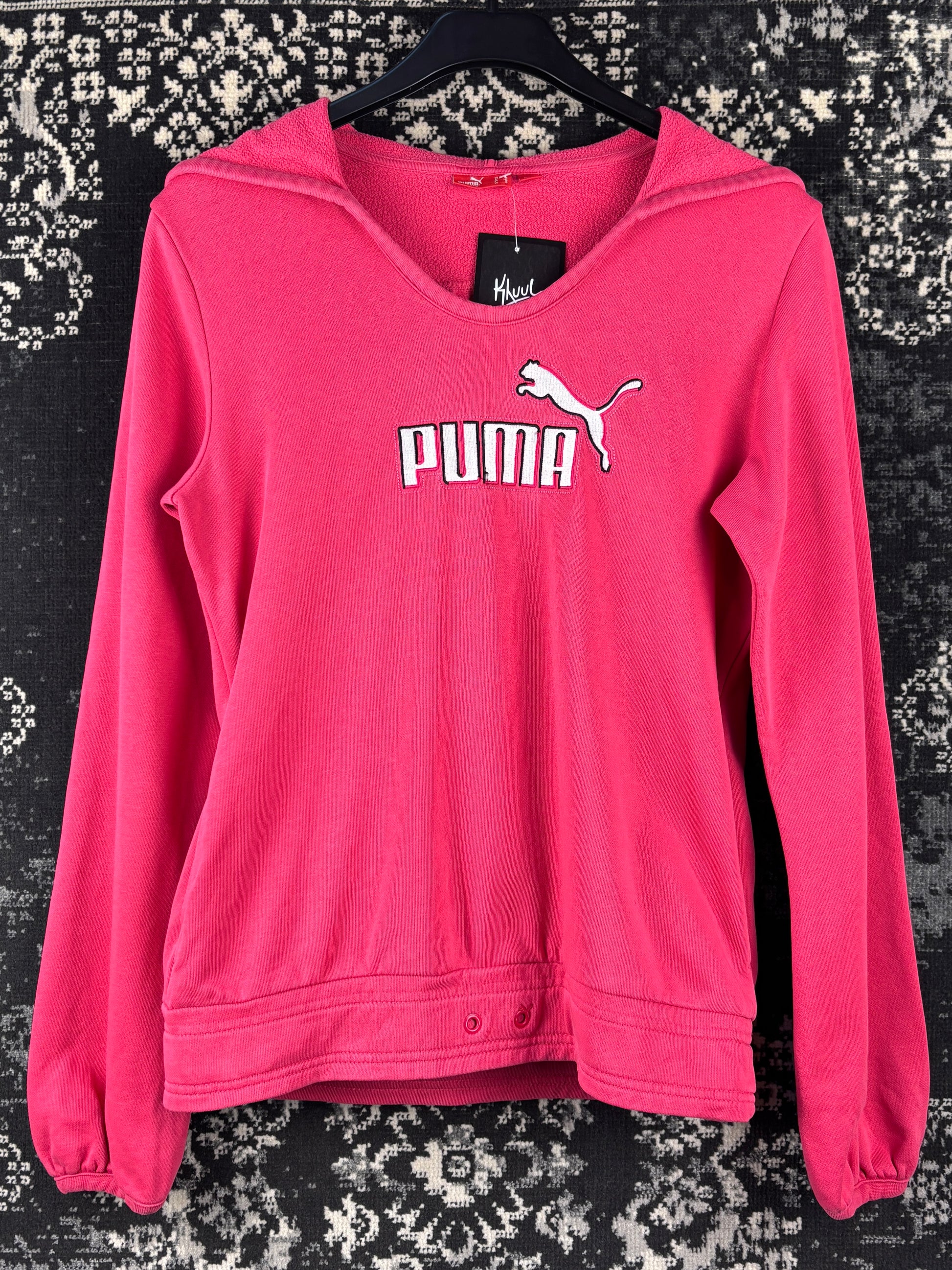 Womens Y2K Pink Puma Hoodie Embroidered Logo Pullover Fleece Lined Long Sleeve Streetwear Athleisure Size M