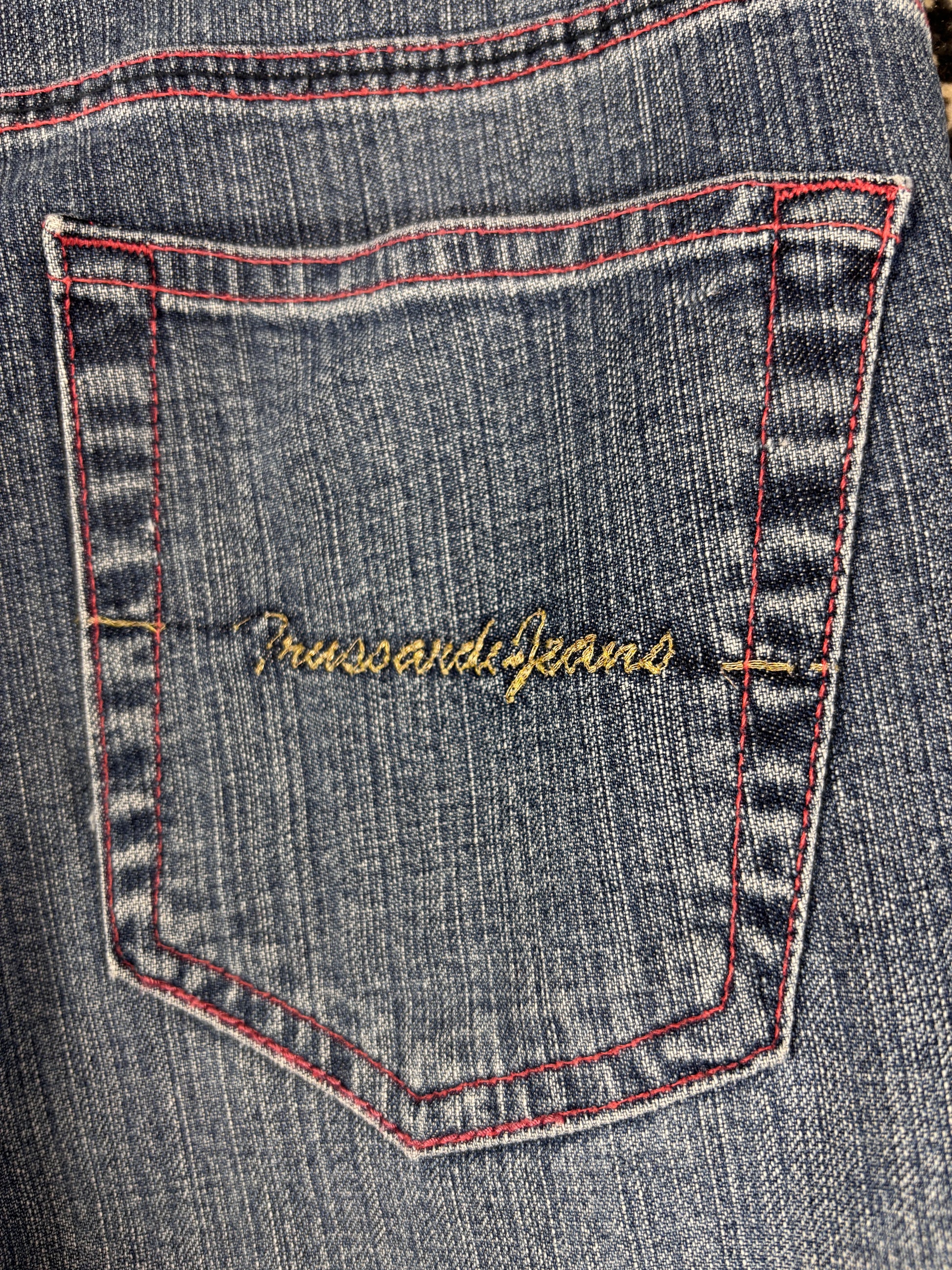 Womens Y2K Blue Denim Jeans Red Beaded Embellished Bootcut Pants